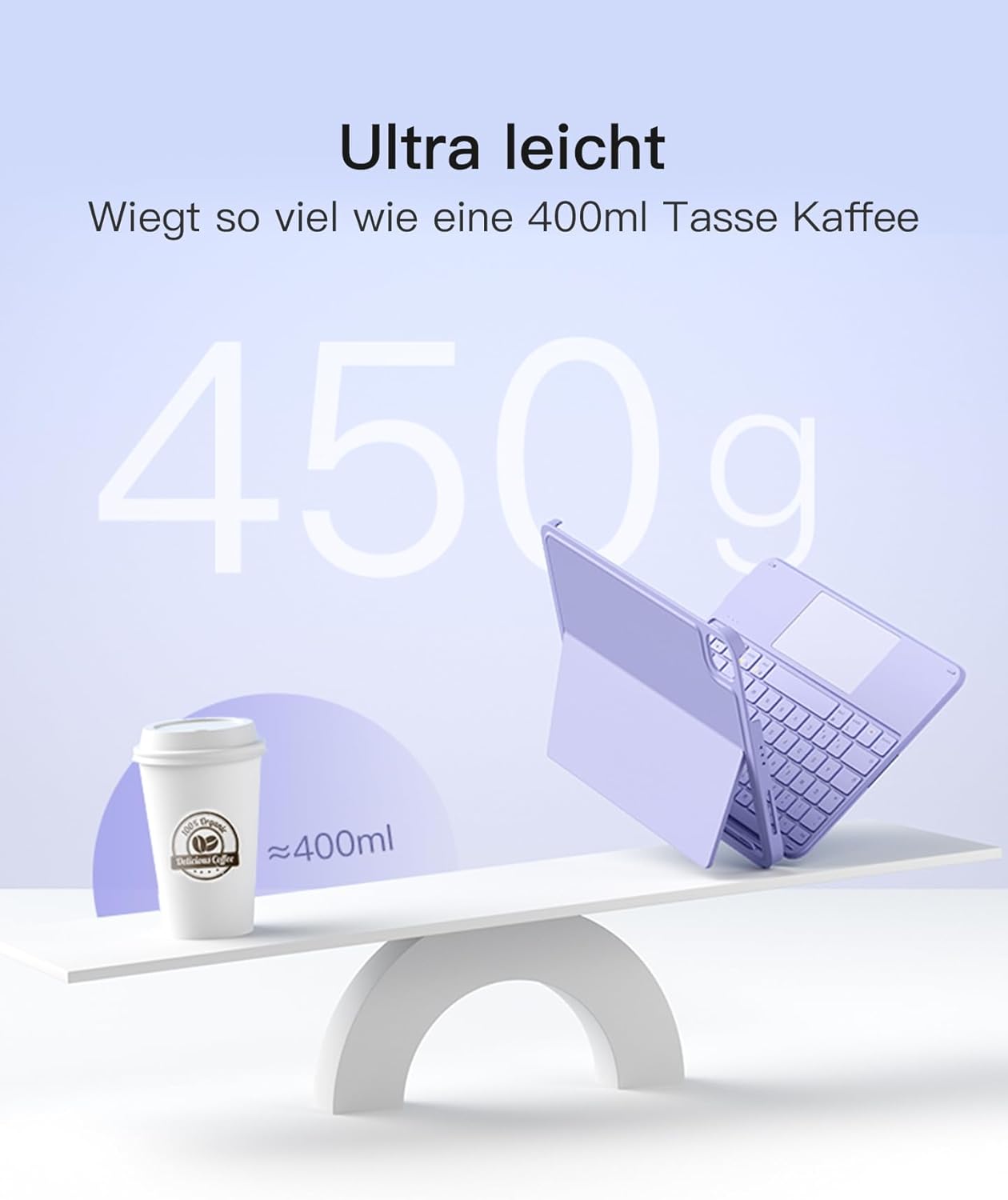 - Ultraleicht & schlank: Die Tastatur ist nur 7.6mm dick und wiegt nur 450g, 200g leichter als andere voll funktionsfähige Tastaturen. Ob in der Hand gehalten oder in einer Handtasche oder Rucksack verstaut, sie ist unglaublich praktisch. Wählen Sie die