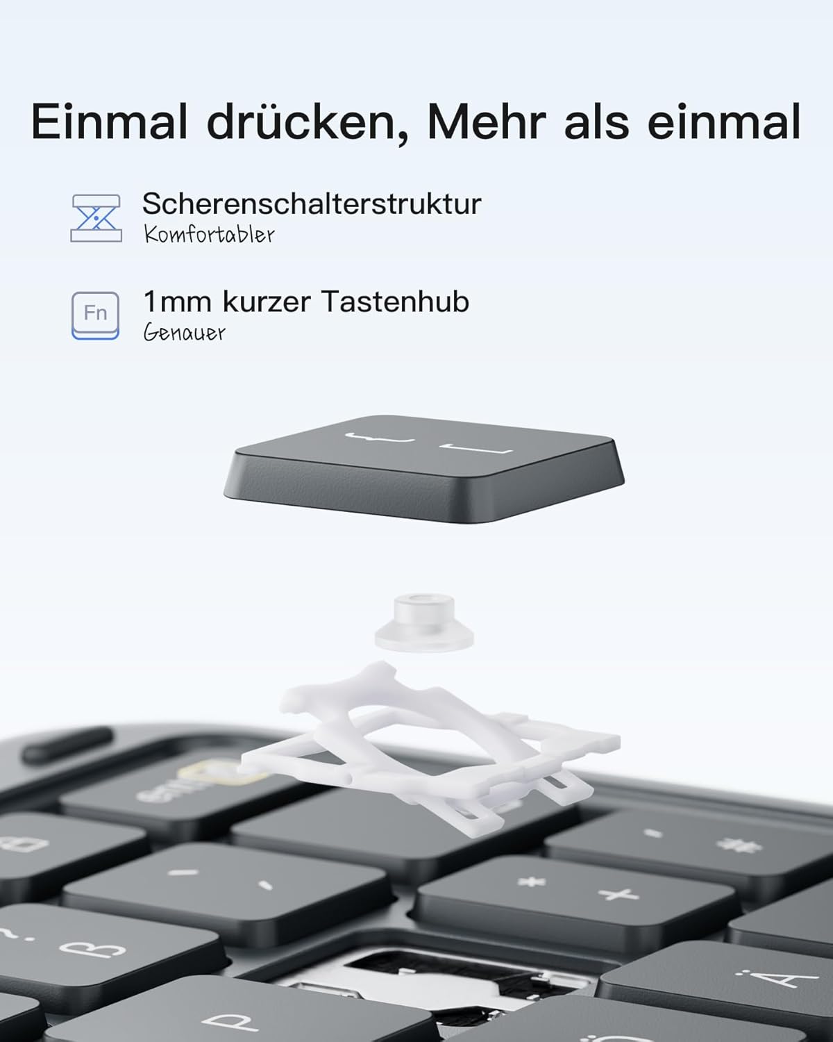 - Komfortables Tippen: Die Tastatur verfügt über einen Tastenhub von 1 mm und eine Scherenschalterstruktur, die schnelle Eingaben und ein komfortables Tipperlebnis gewährleistet und Ihr Benutzererlebnis verbessert