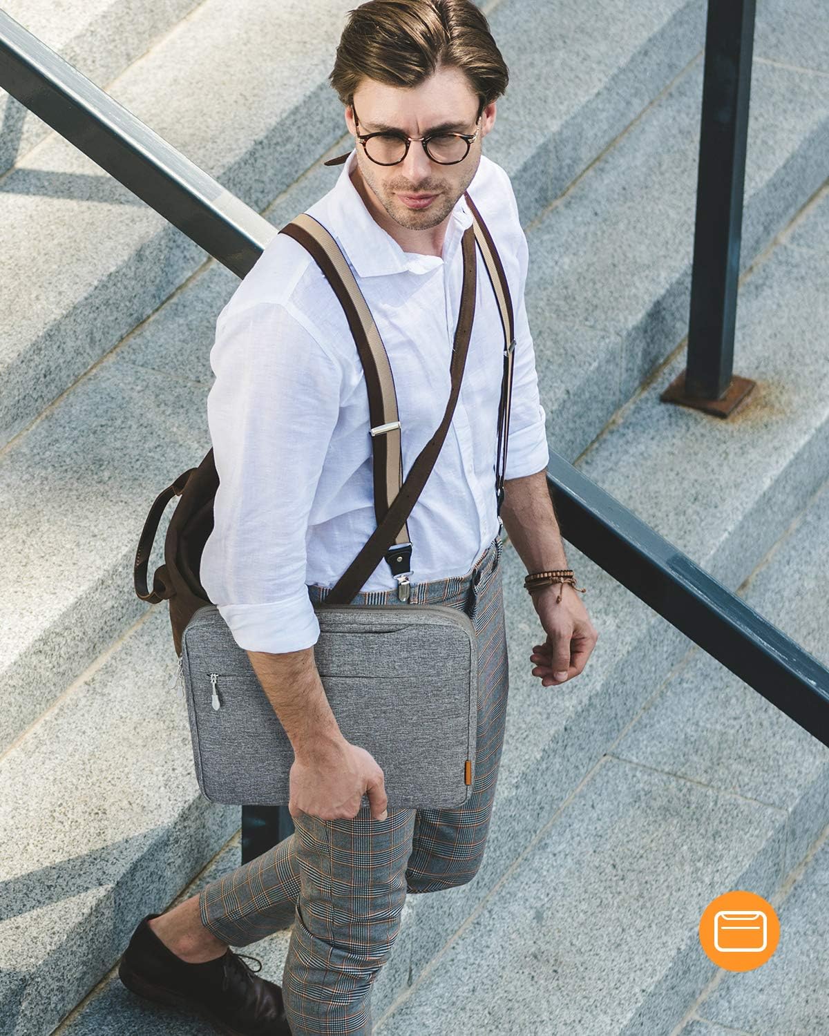 - Doppel-Fach Design: Im Hauptfach finden Tablet oder Laptop Platz. Die Netzzubehörtasche besitzt 8 Befestigungsbänder und 3 Kartenfächer in denen Gegenstände wie A5 Notizblock, Ladegerät, USB-Kabel, Kopfhörer, Pad Pencil, Festplatten u.v.m.