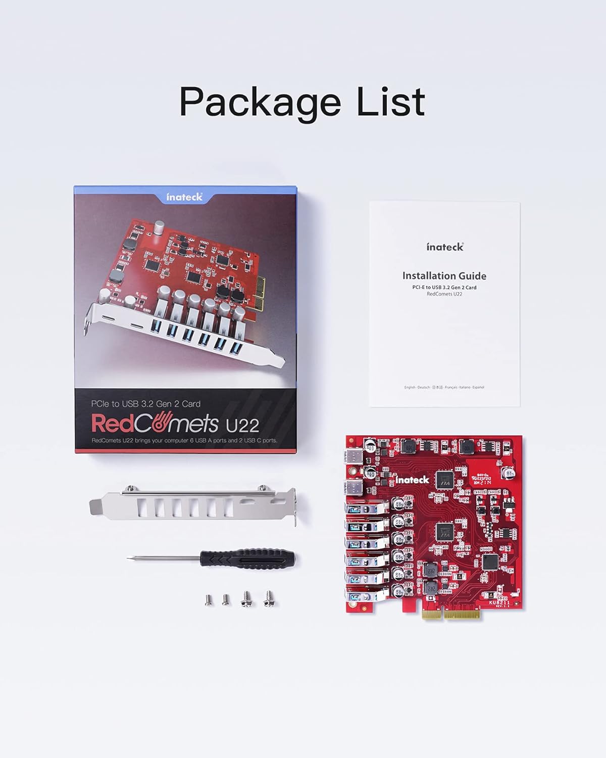 - Erweiterungskarte mit mehreren Anschlüssen: Der RedComet U22 erweitert einen PCIe x4 Kartensteckplatzvon um 6 USB Typ-A 3.2 Gen 2 Ports und zwei USB Typ-C 3.2 Gen 2 Ports.