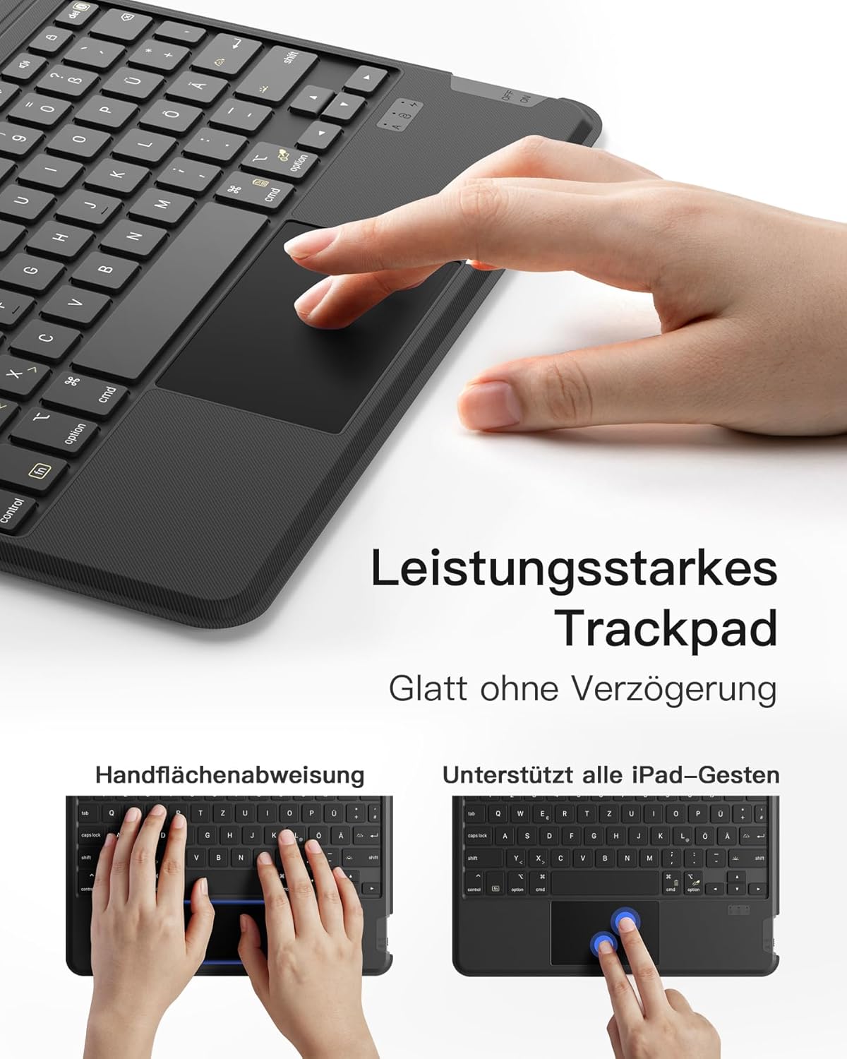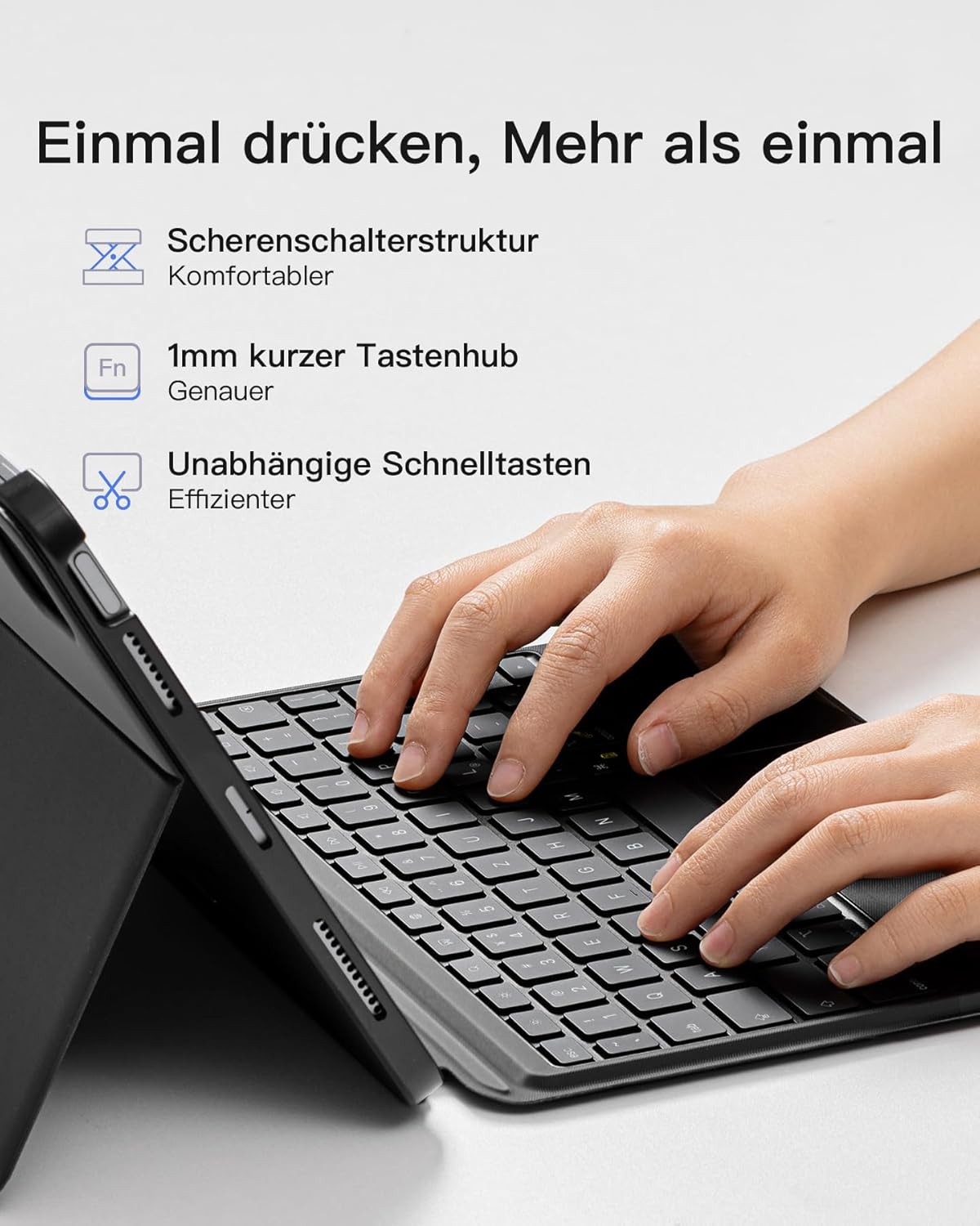 - Präzise Berührung: Das vollflächige, druckempfindliche Touchpad unterstützt alle iPad-Gesten, das grössere Multi-Touchpad beschleunigt die Navigation auf dem iPad Air 5 / Air 4 / Pro 11 und macht das leichte iPad zu einem fast echten Laptop ohne