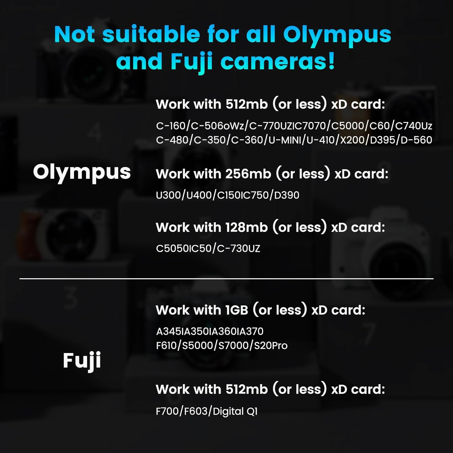 - Kompatibel mit den meisten älteren Digitalkameras, die M+ 2GB XD-Karten verwenden
