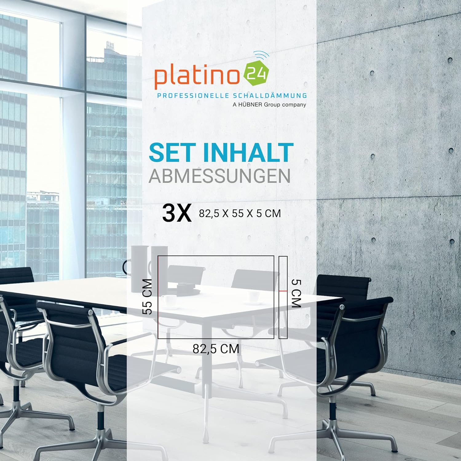 platino24 Schallabsorber Industrial Style aus Basotect G+, 3 Absorberelemente Rechteck 825x550x50mm,