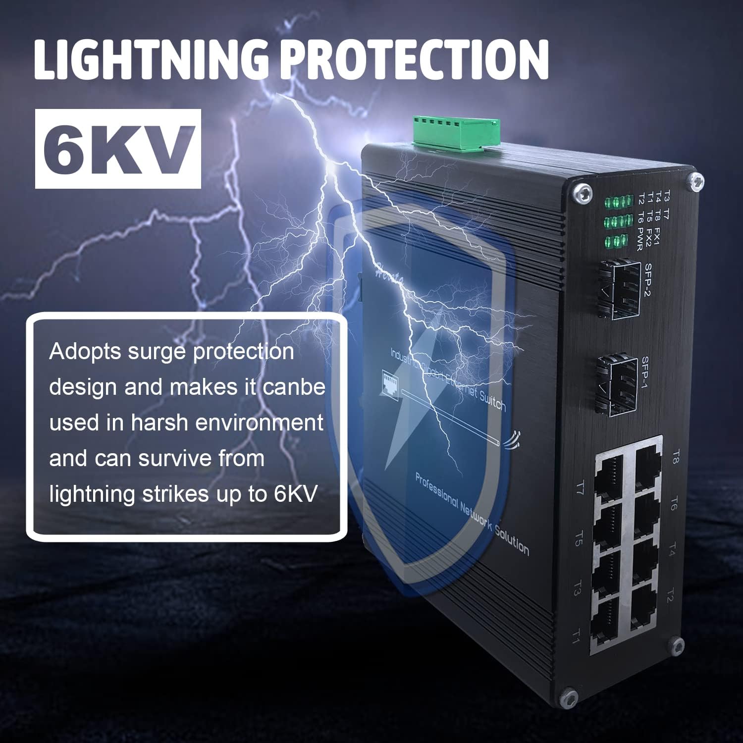 - Industriestandard-Design, staubdichtes und enges Design IP40, robustes hochfestes Metallgehäuse, -40 °C bis 80 °C (-40 °F bis 176 °F) Betriebstemperatur, kann einer Vielzahl von rauen Umgebungen entsprechen