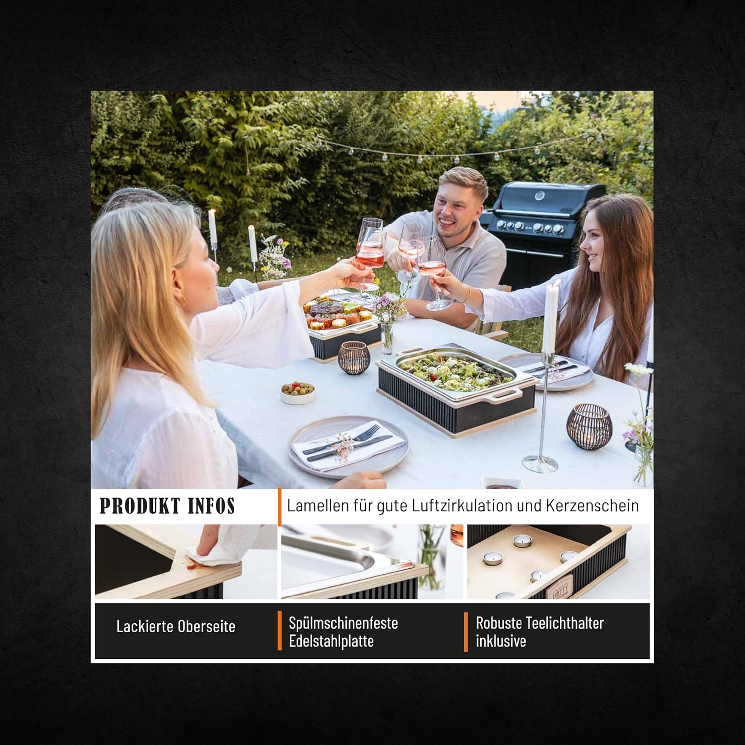 - Perfekte Lösung für warmes Grillgut: Du hast keine Lust mehr auf kaltes Fleisch beim Grillen? Die HOTTY Legacy – Warmhalteplatten sind die ultimativen Begleiter für ein sorgloses Grillvergnügen! Dank der Teelichter unter der Edelstahlplatte bleiben