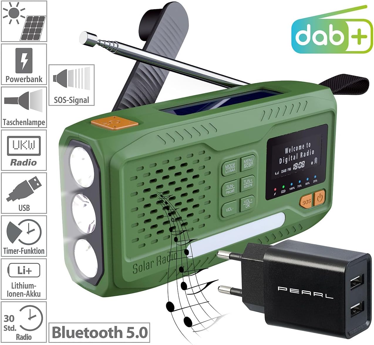 - Kurbel-Digitalradio mit Unterstützung für Notfall-Warn-Funktion (EWF) • Starker Li-Ion-Akku für bis zu 30 Stunden Musik • Integrierte Taschenlampe mit SOS-Funktion & Nachtlicht mit Warnlicht-Funktion • Bluetooth 5 für kabellose Verbindung mit