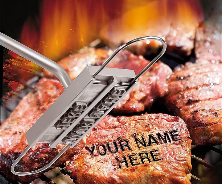 - Grill-Brandeisen mit Holzgriff • Zum Einbrennen von persönlichen Botschaften auf Grill-Fleisch • Mit 80 auswechselbaren Buchstaben und 8 Leerzeichen • Brandeisen bestückbar mit max. 20 Buchstaben (in 2 Zeilen)
