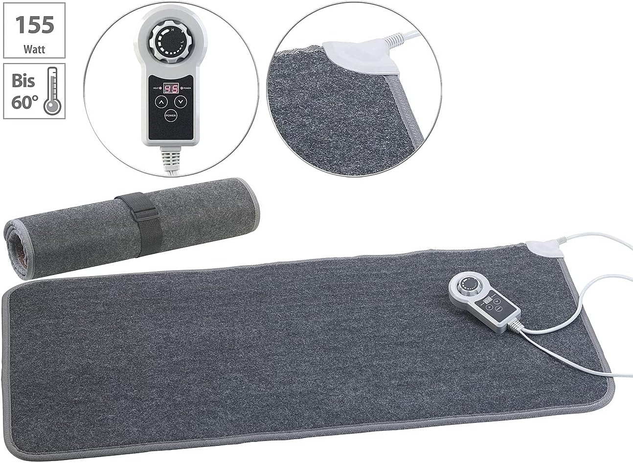 - Integriertes LED-Display: zeigt Temperatur und Timer • Angenehm weiche Textiloberfläche: grauer Vliesstoff aus Polyester • Masse: 105 x 55 cm, Gewicht: 1 kg