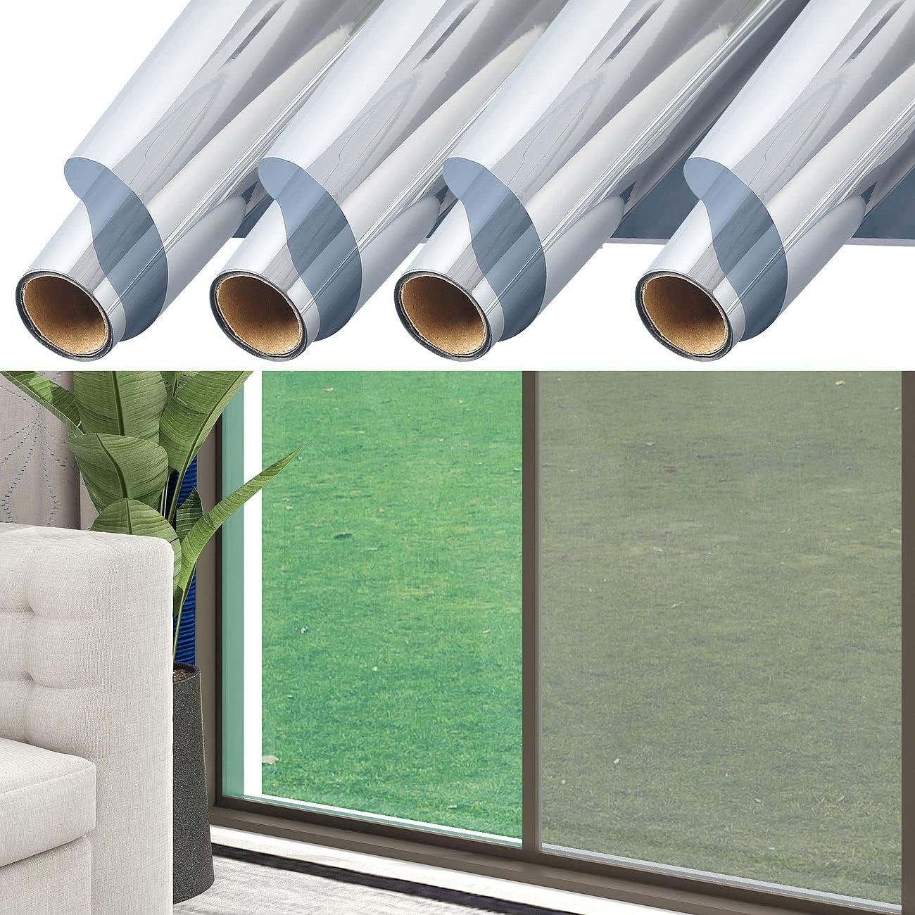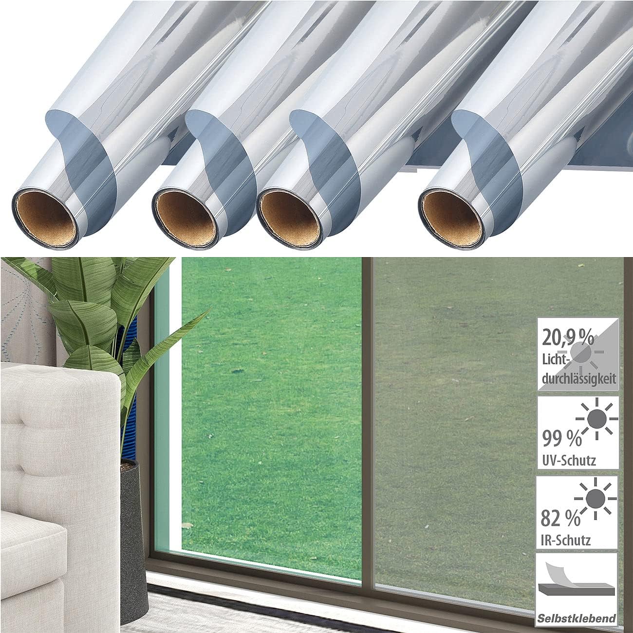 infactory Sonnenschutz-Folie: 4er-Set Isolier-Spiegelfolie, selbstklebend, Sicht-/UV-Schutz,60x200cm