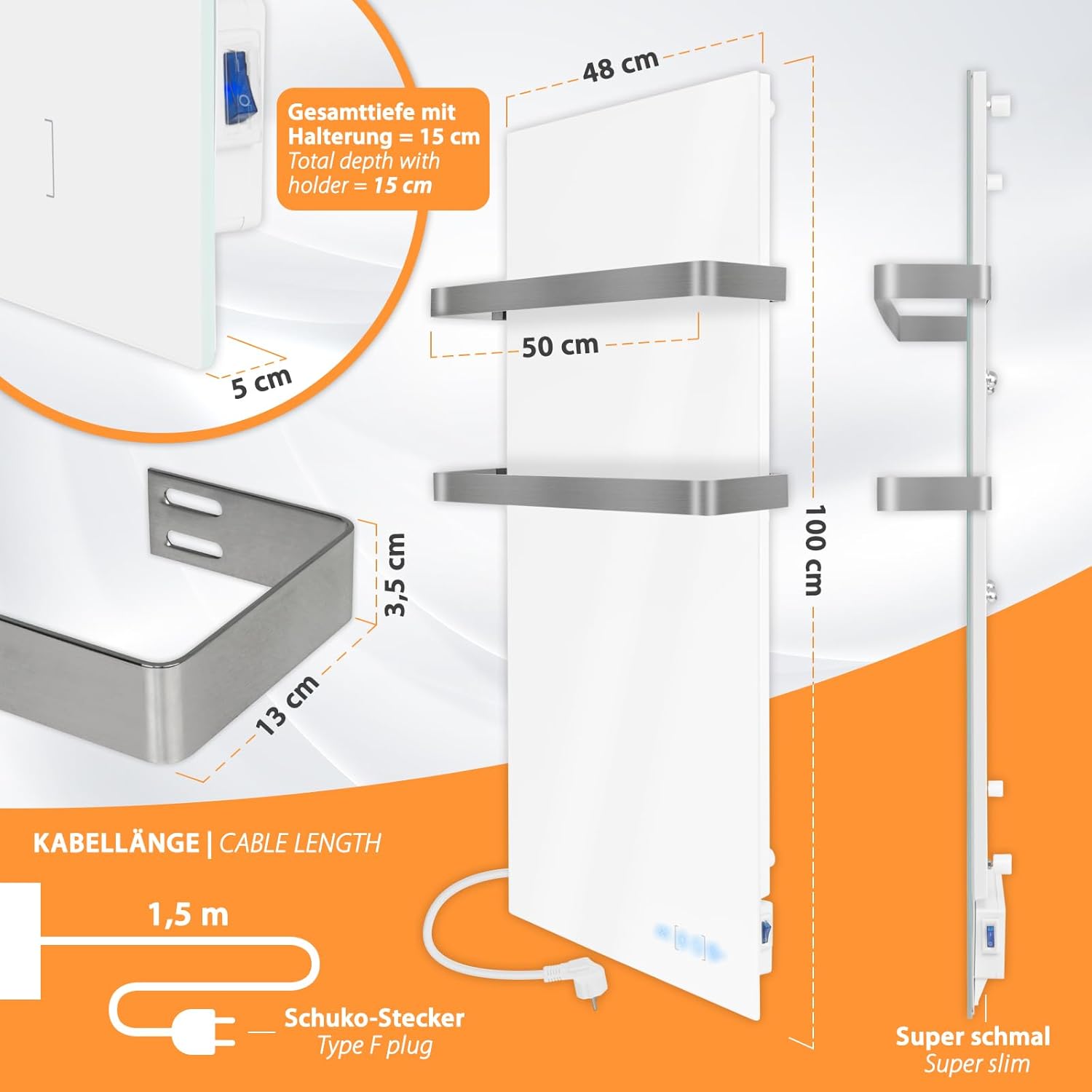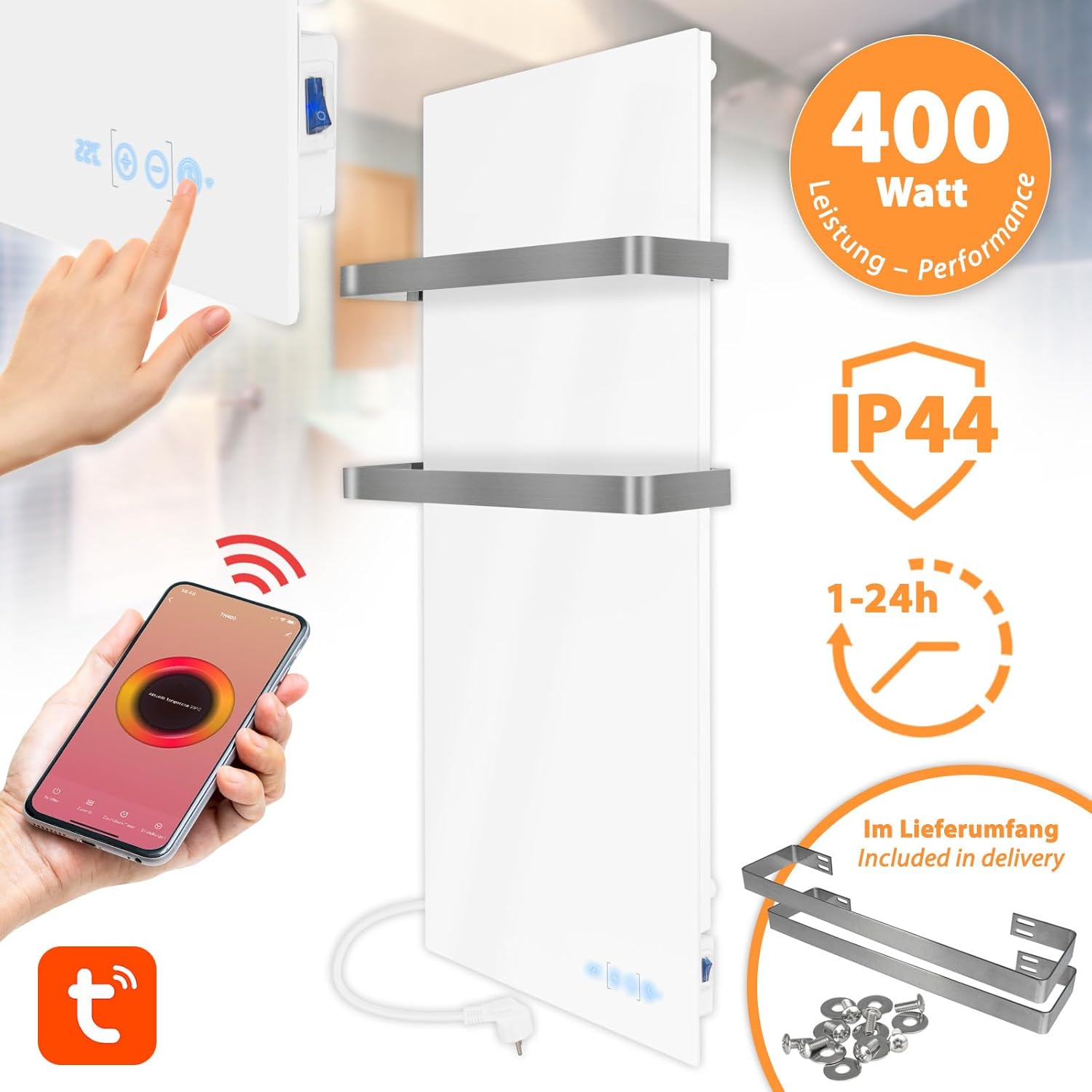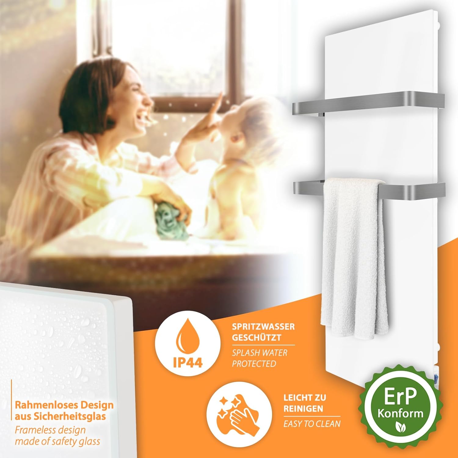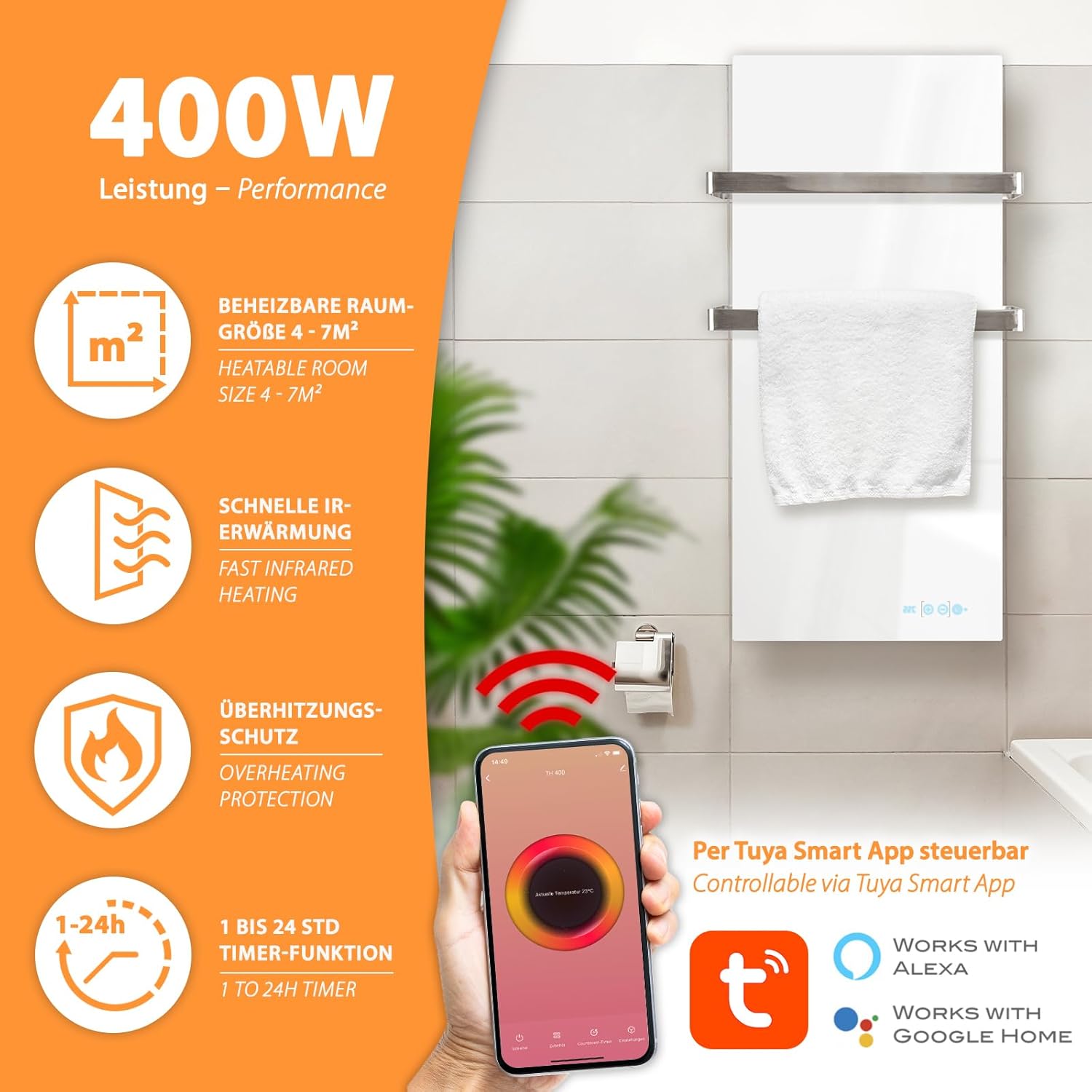 - Elektrischer Handtuchheizkörper aus Glas mit 400W Infrarot-Heizelement