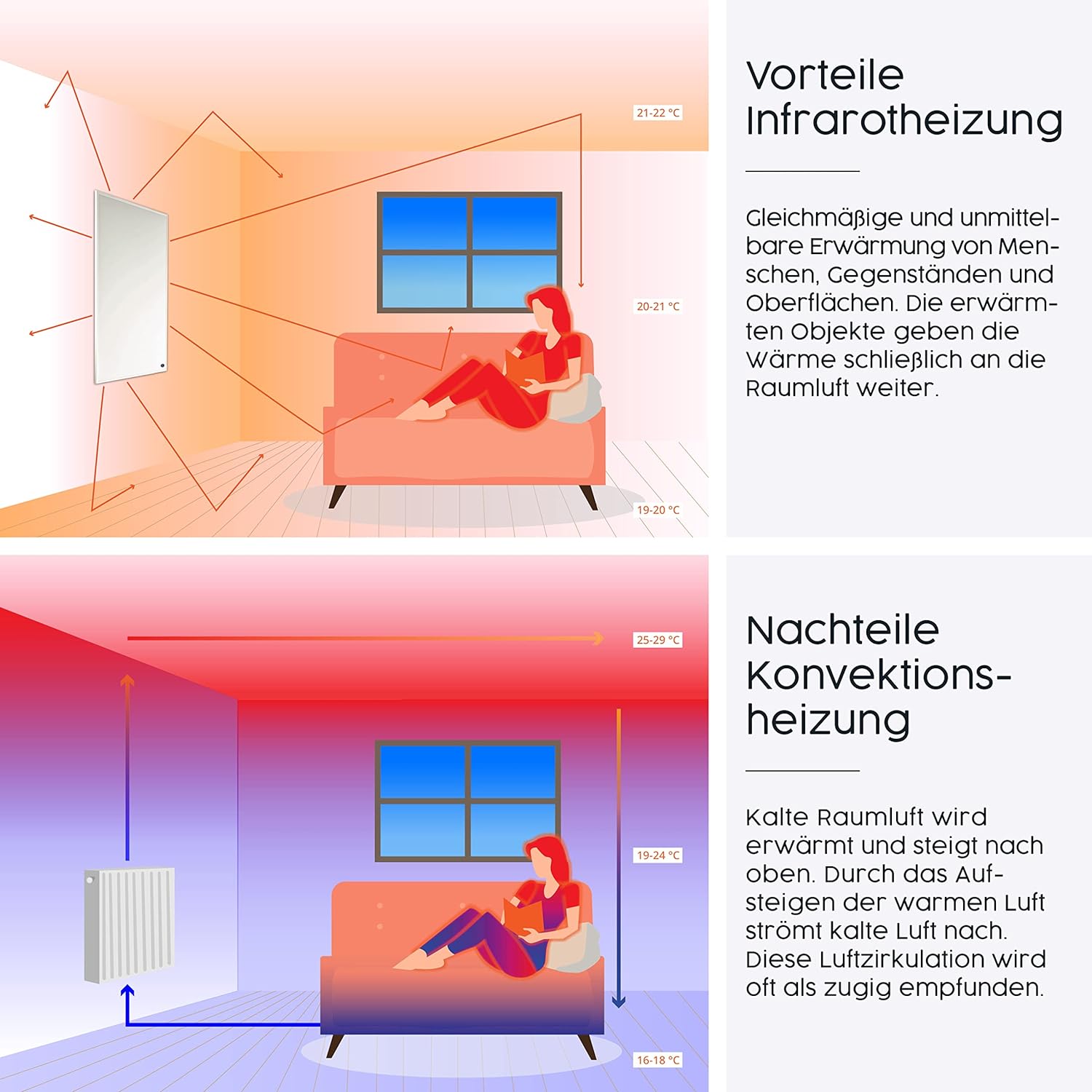 - ✔️ GRÜNES HEIZEN - Infrarot Wandheizungen sind eine gesunde Form des Heizens, denn durch die Direktwärme entsteht keine Luftzirkulation. Das ist besonders gut für Hausstauballergiker und Rheumapatienten