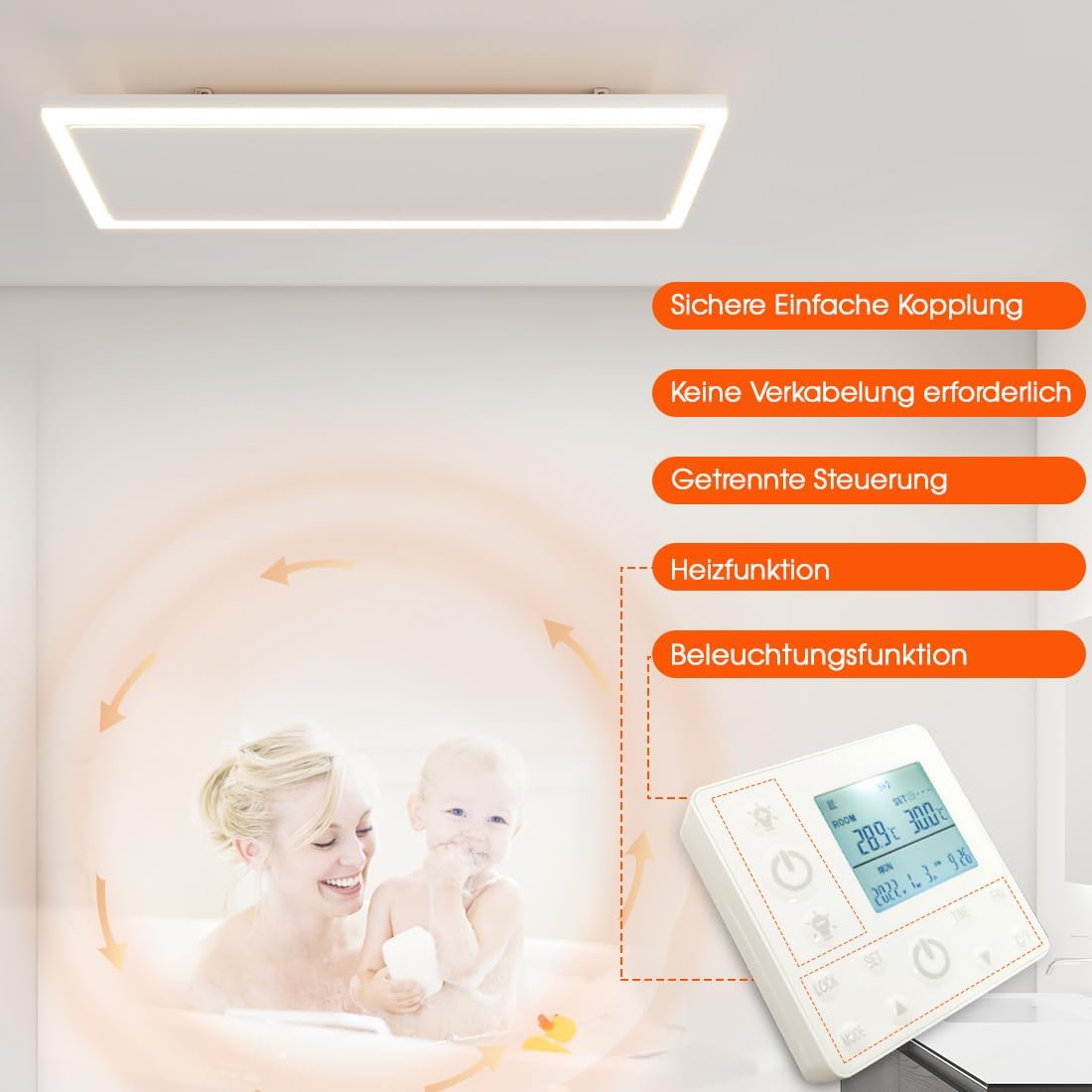 - ✔ 2-IN-1 HEIZUNG & BELEUCHTUNG - Platzsparend und effizient! Der Deckenheizstrahler verfügt über programmierbare Timer, einstellbare Temperatur, Helligkeitsstufen und umschaltbare Farbtemperaturen. Perfekt für gemütliche Wärme und angenehmes Licht.
