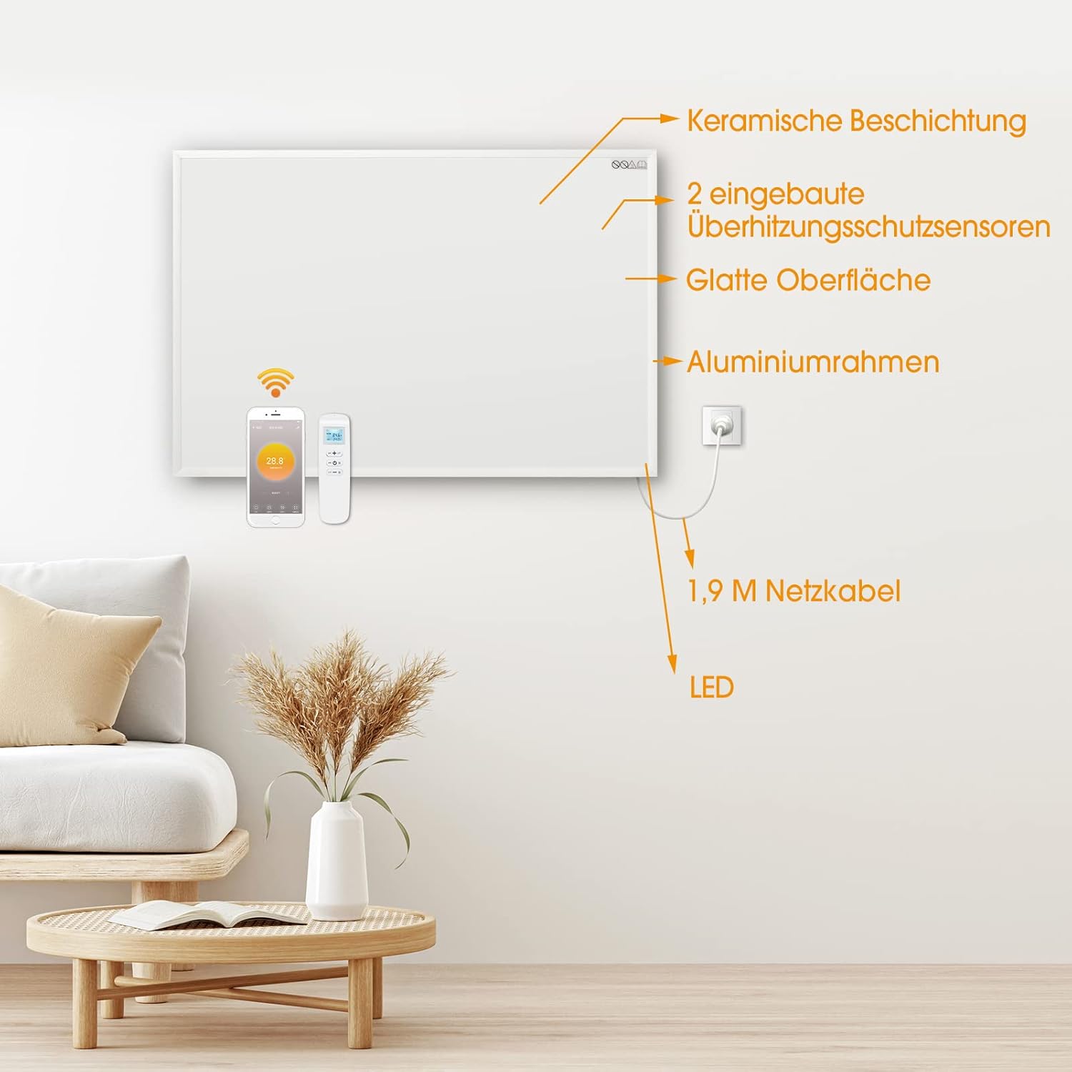 - 【Leise & Gesund】- Aufgrund des Heizprinzips des Infrarots erhitzt der Heizkörper leise und gesund, kein Staub, keine seltsamen Gerüche oder Geräusche, nur wohlige Wärme.