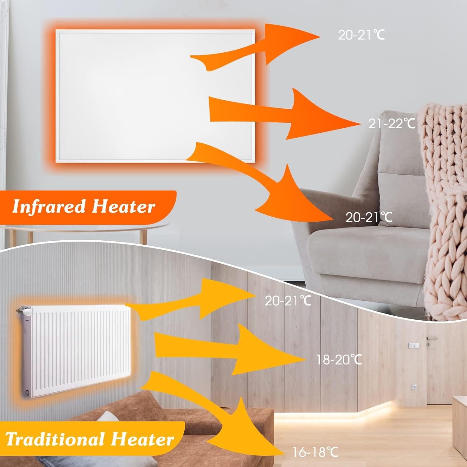 - ❤ Umweltfreundlich & Energiesparend - Infrarot Heizplatte heizt wie Sonnenlicht, kein CO2-Ausstoss, 50% Kostenersparnis im Vergleich zu anderen Heizsystemen.