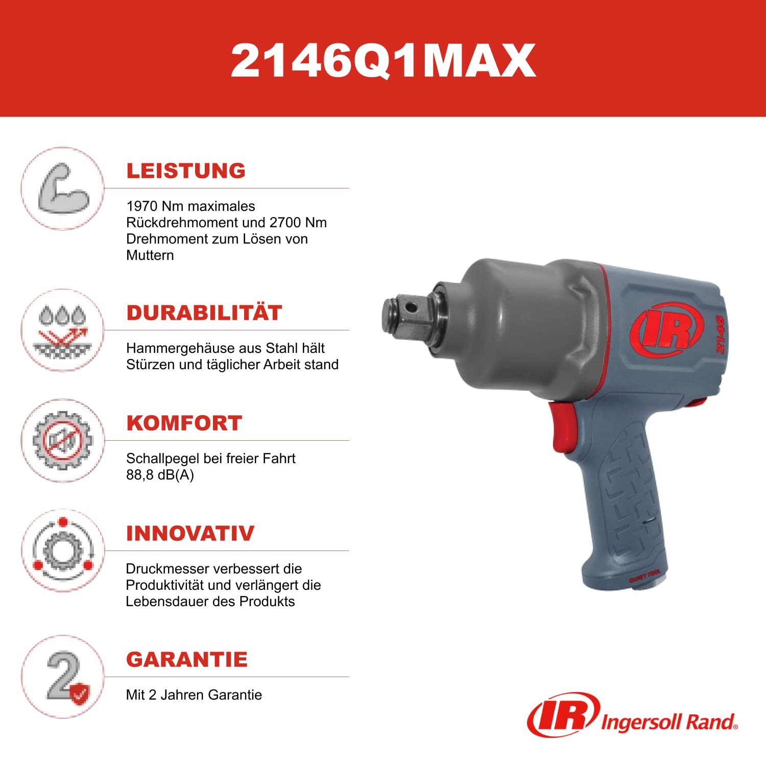 - Maximale Leistung: Der Ingersoll Rand 2850MAX bietet ein beeindruckendes maximales Drehmoment von 1970 Nm für müheloses Arbeiten in anspruchsvollen Situationen.