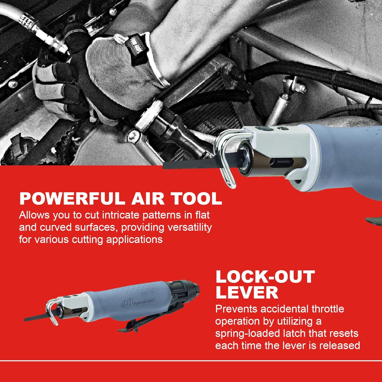 - Ingersoll Rand 529 ist eine vibrationsreduzierte Stichsäge, die sich perfekt zum Schneiden von Kunststoffen, Glasfasern, Blechen oder Aluminium eignet.