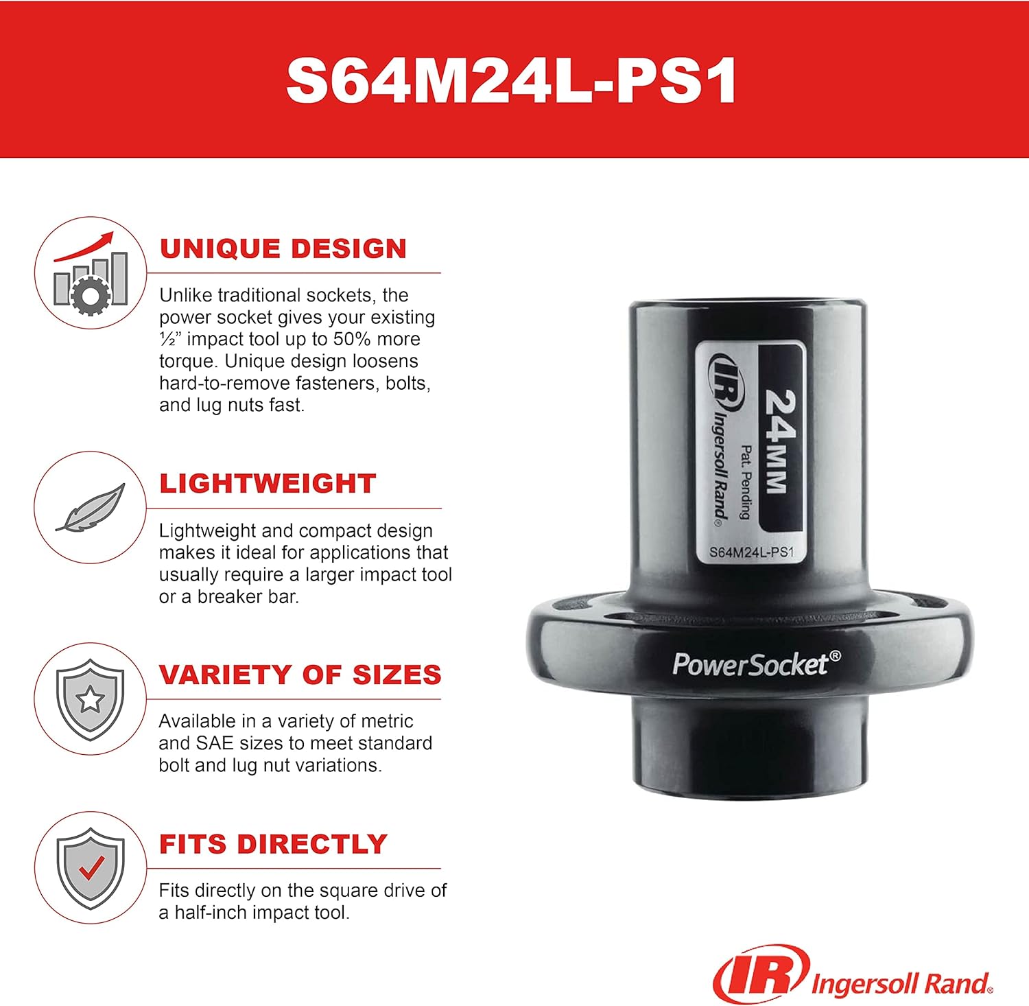 - Im Gegensatz zu herkömmlichen Steckschlüsseln liefert der PowerSocket Ihrem bestehenden 1/2" Schlagwerkzeug bis zu 50 % mehr Drehmoment.