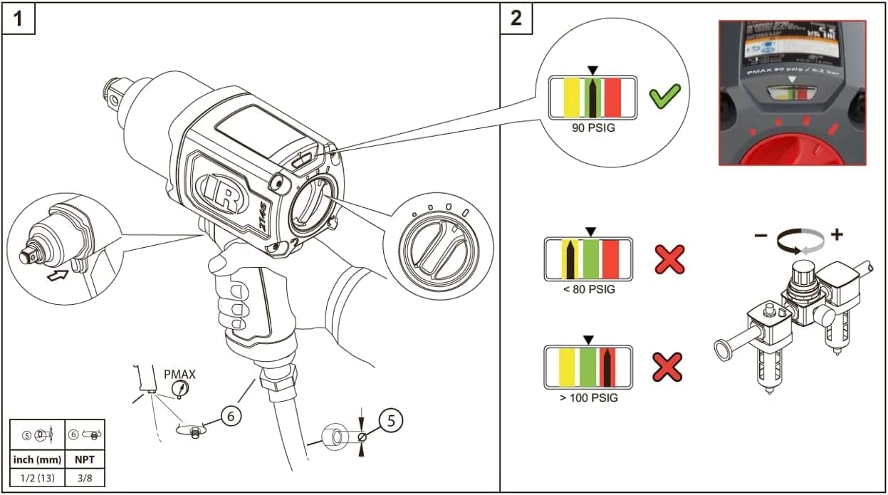- MAXIMALE Leistung: Leistung für jede Arbeit und die Möglichkeit, den Luftdruck für optimale Leistung zu überwachen.