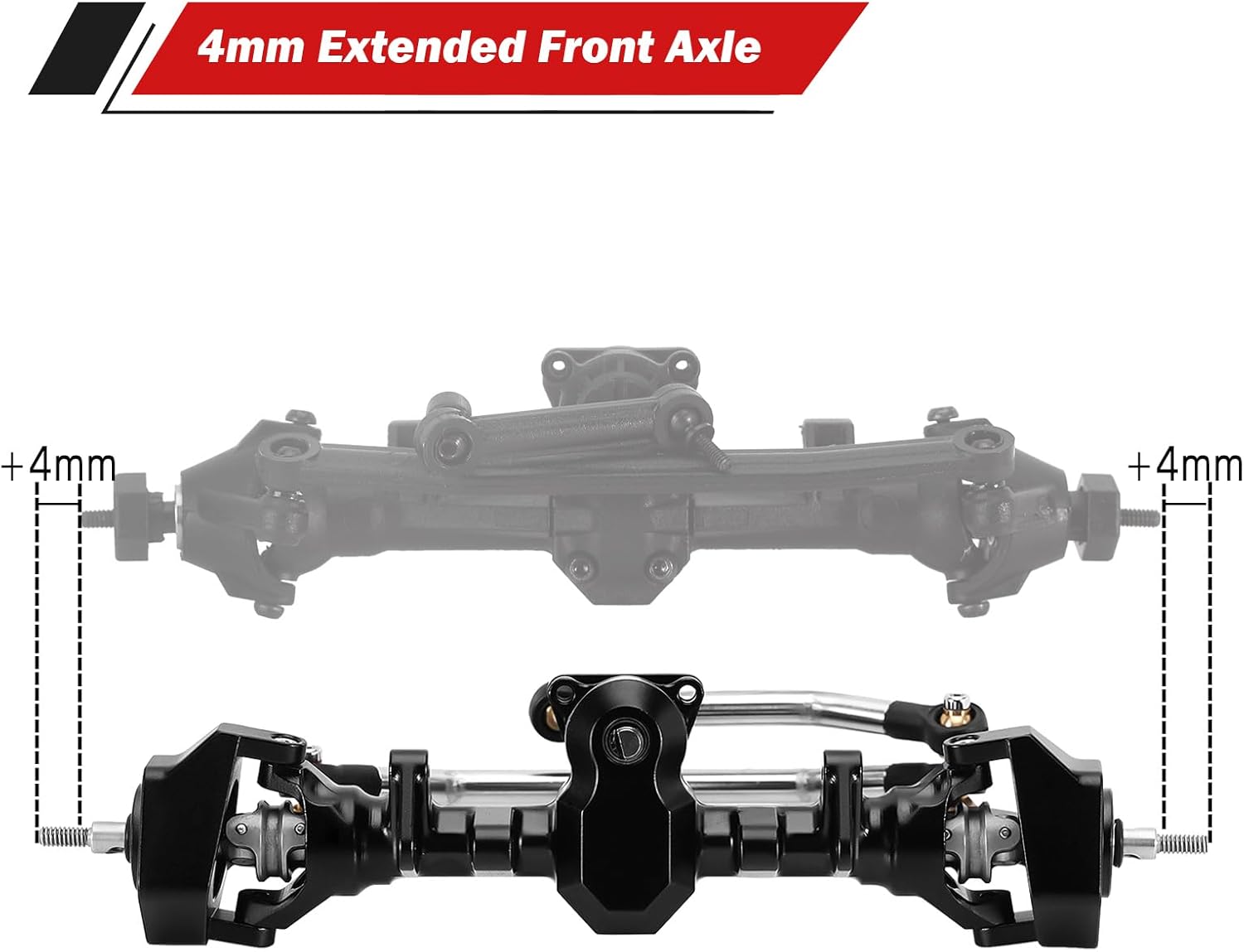 - +4mm verlängerte Achsen tragen dazu bei, die Stabilität auf unebenem Gelände zu erhöhen und die Lenkfreiheit zu verbessern, sodass eine grössere Auswahl an Reifen möglich ist.
