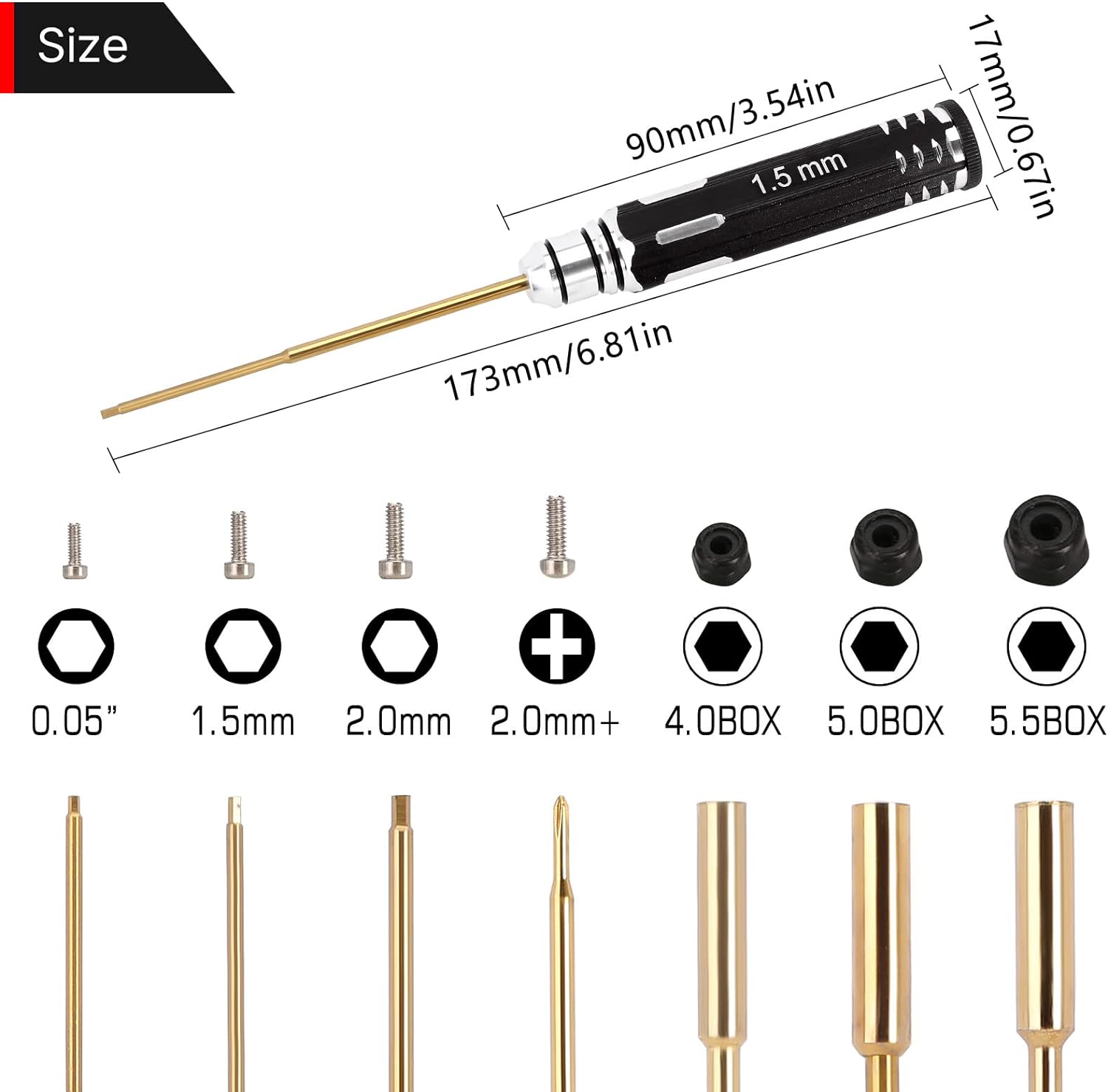- 【Packliste】 Dieses RC-Auto-Tool-Kit enthält 4.0 5.0 5.5 Box-Schlüssel, 0.05inch 1.5mm 2.0mm Bohrspitzen und 2.0 + Kreuzschlitzspitzen Sechskantschraubendreher. Alle diese Werkzeuge sind notwendig, um eine grossartige Erfahrung beim Tuning und der