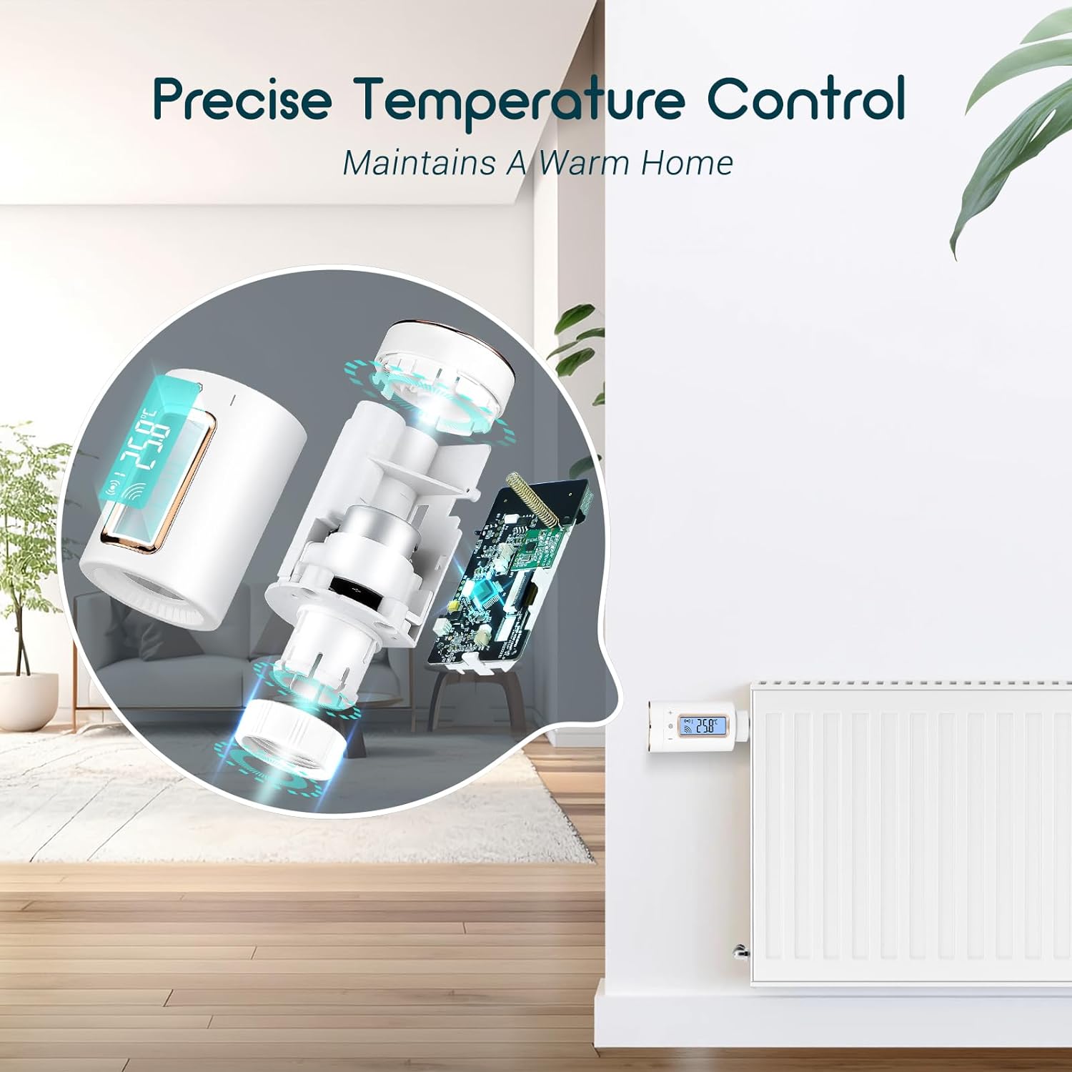 - 【WiFi-Fernbedienung】 Sie können den Heizkörperthermostat jederzeit und überall frei fernsteuern und auf Ihrem Telefon überwachen.