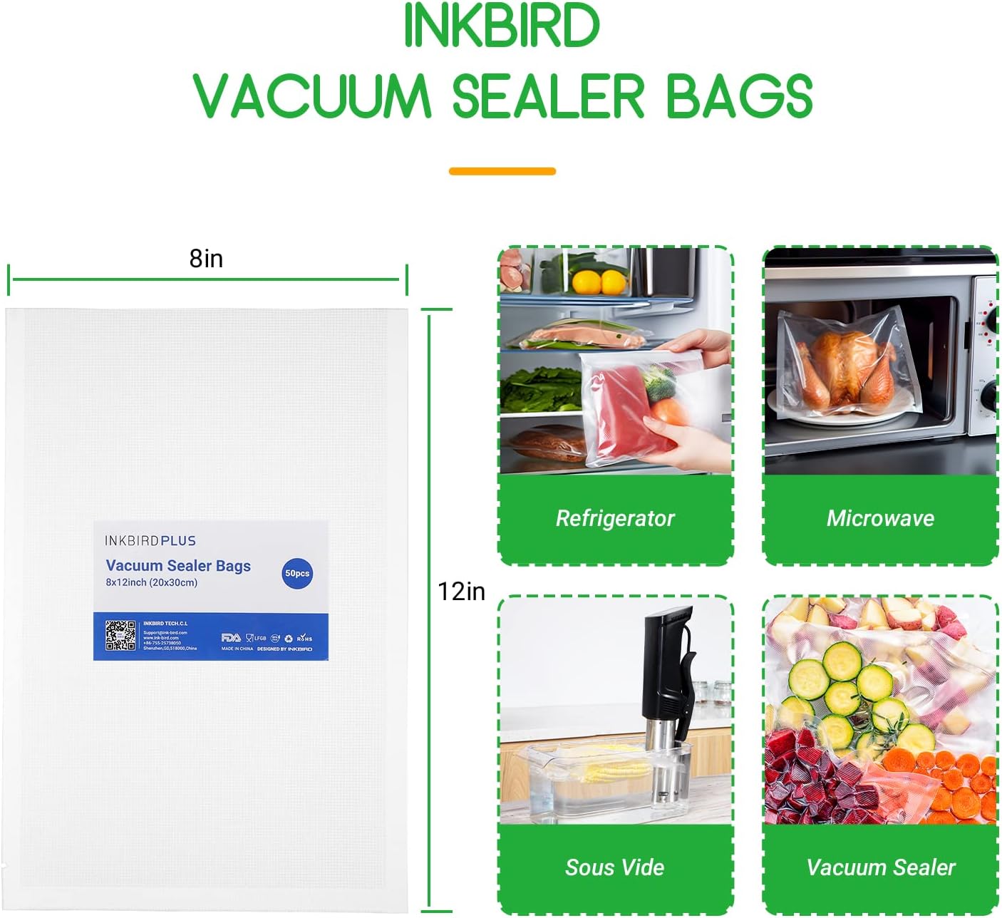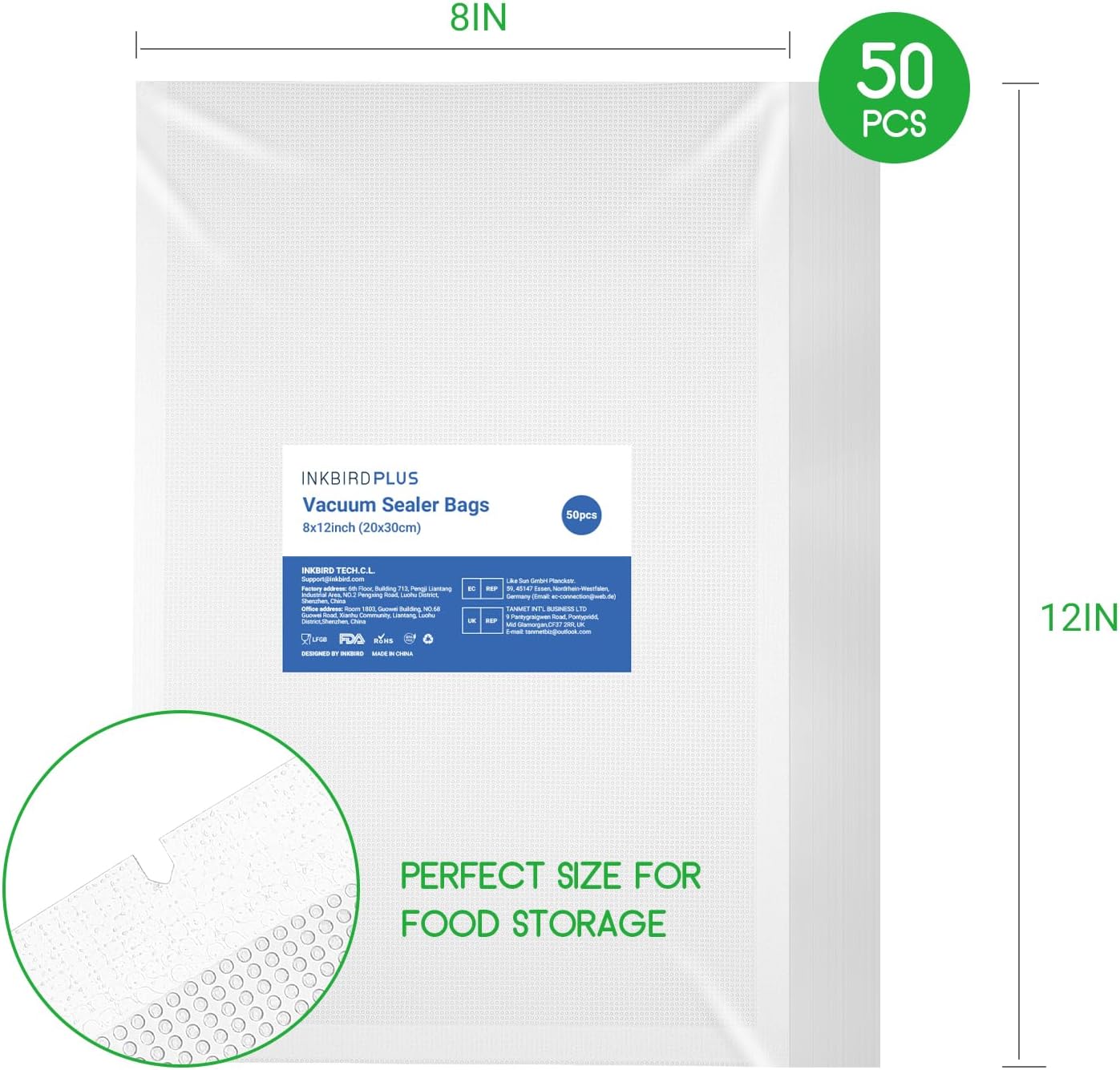 Inkbird Vakuumierbeutel Lebensmittel 20CMx30CM 50 Beutel, für Vakuumierer & Folienschweissgeräte, BP