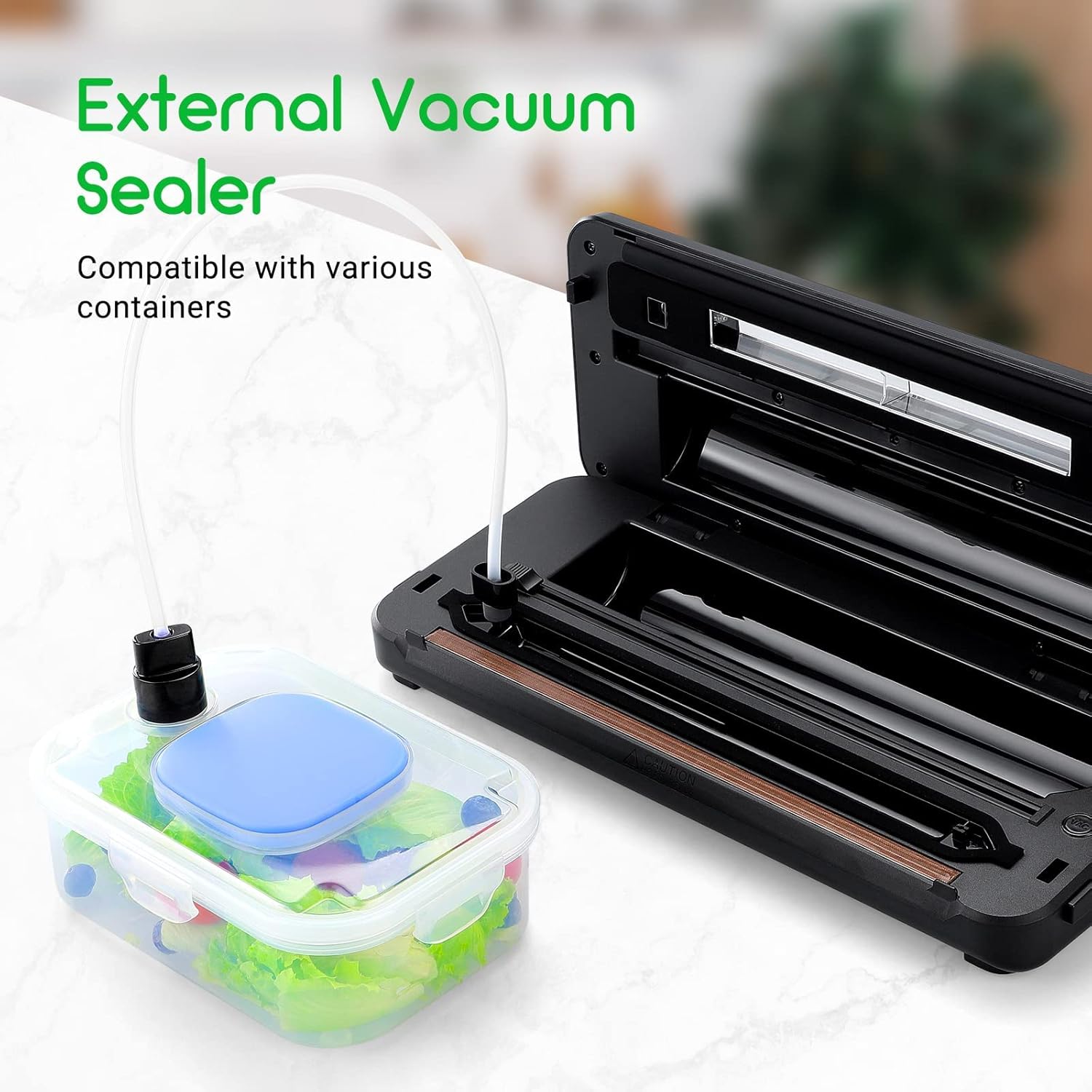 - 【Alles, was Sie brauchen, ist da】 Das Paket enthält alles, was wir zum Vakuumieren brauchen – 1 Beutelrolle (28 x 300 cm/11 x 118 Zoll), 5 Vakuumbeutel (20 x 30 cm/7,8 x 11,8 Zoll); 1 Luftansaugschlauch; 1 Ersatzdichtung; 1,2 m Netzkabel und