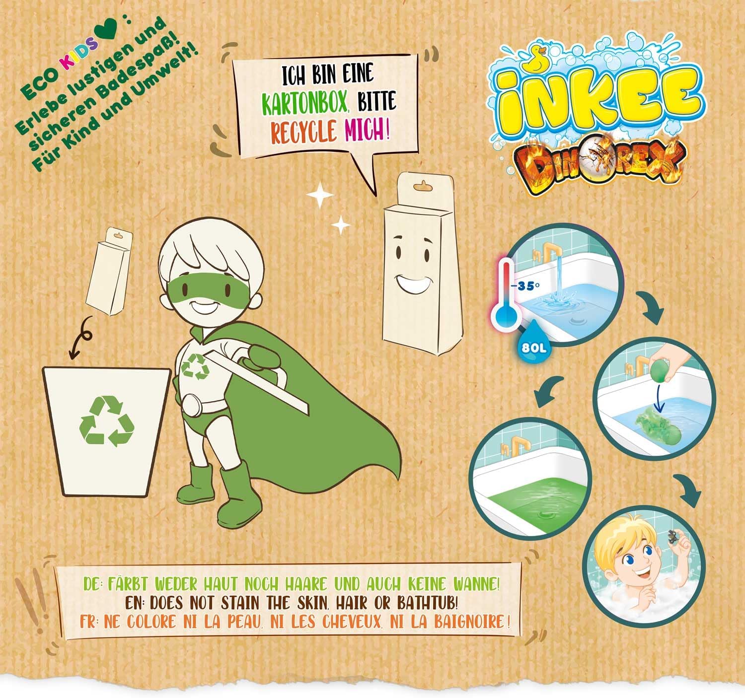 - Die INKEE Surprise Dino Badebomben Kinder bieten für die vielen Dinosaurier-Fans mehrfachen Spass. Während sich die Badekugel sprudelnd im Wasser auflöst und einen süssen Duft im Raum verströmt, steigt die Spannung, welches der insgesamt 6