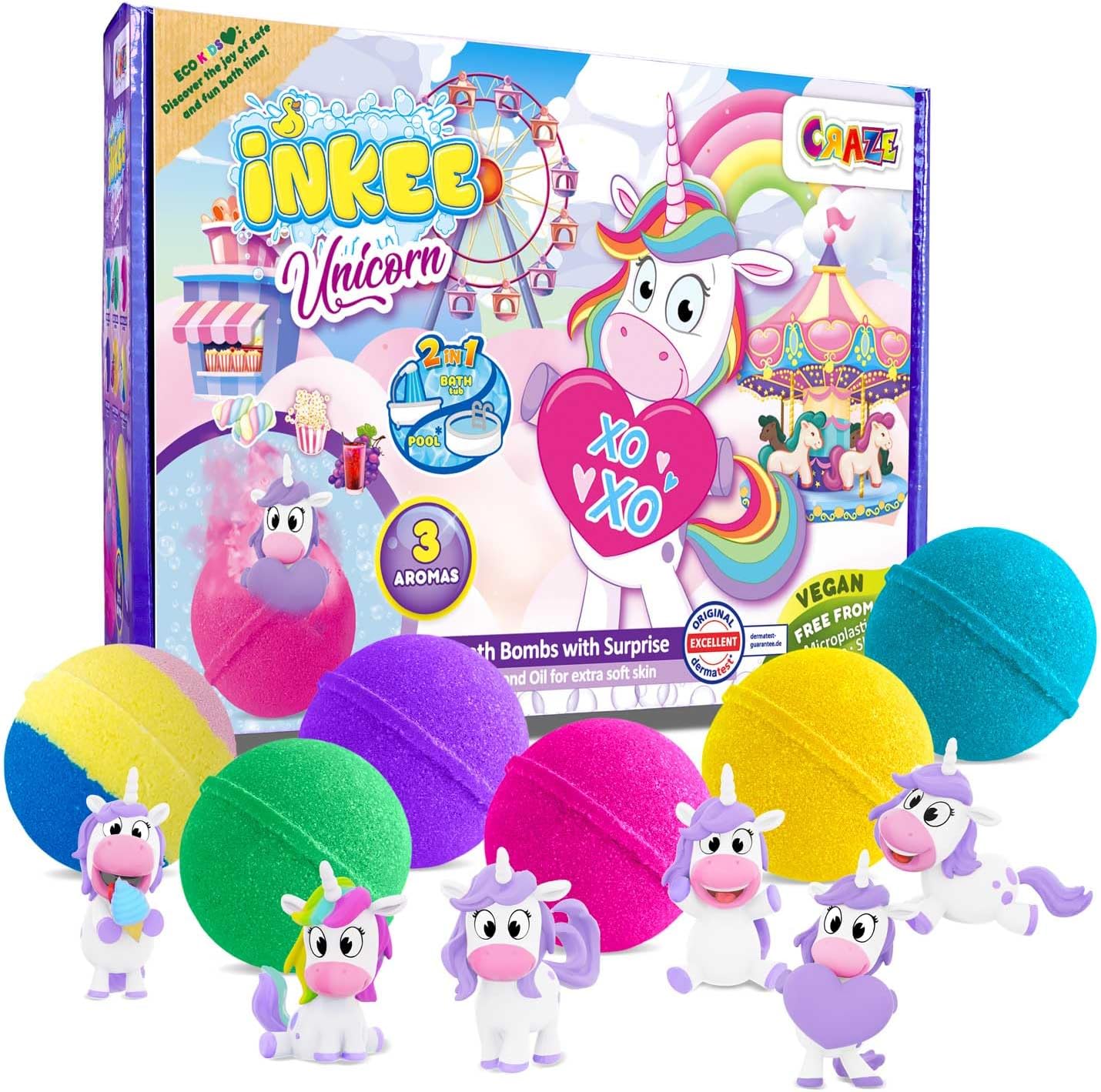 - Die INKEE Surprise Unicorn Badebomben Kinder bieten für die vielen Einhorn-Fans mehrfachen Spass. Während sich die Badekugel sprudelnd im Wasser auflöst und einen süssen Duft im Raum verströmt, steigt die Spannung, welches der insgesamt 6
