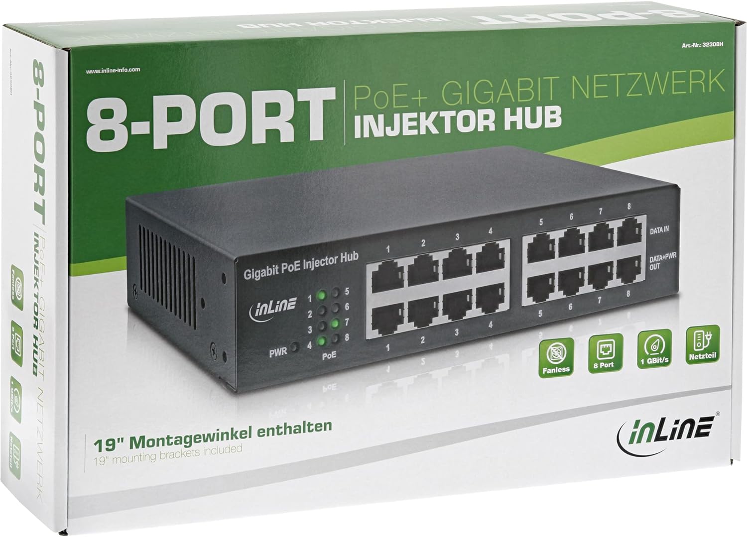 - PoE-Ausgangsleistung: Pro Port max. 30 Watt