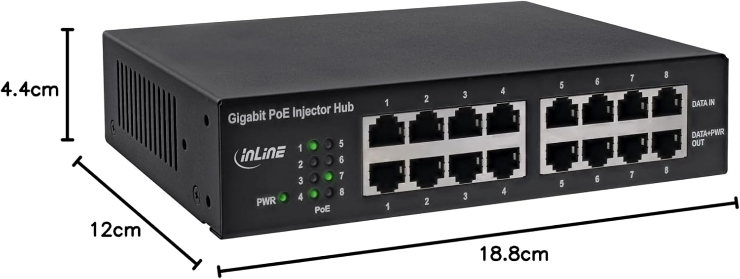 - Ports "DATA IN": 8x 10/100/1000Base-T RJ45, Auto-MDI/MDI-X