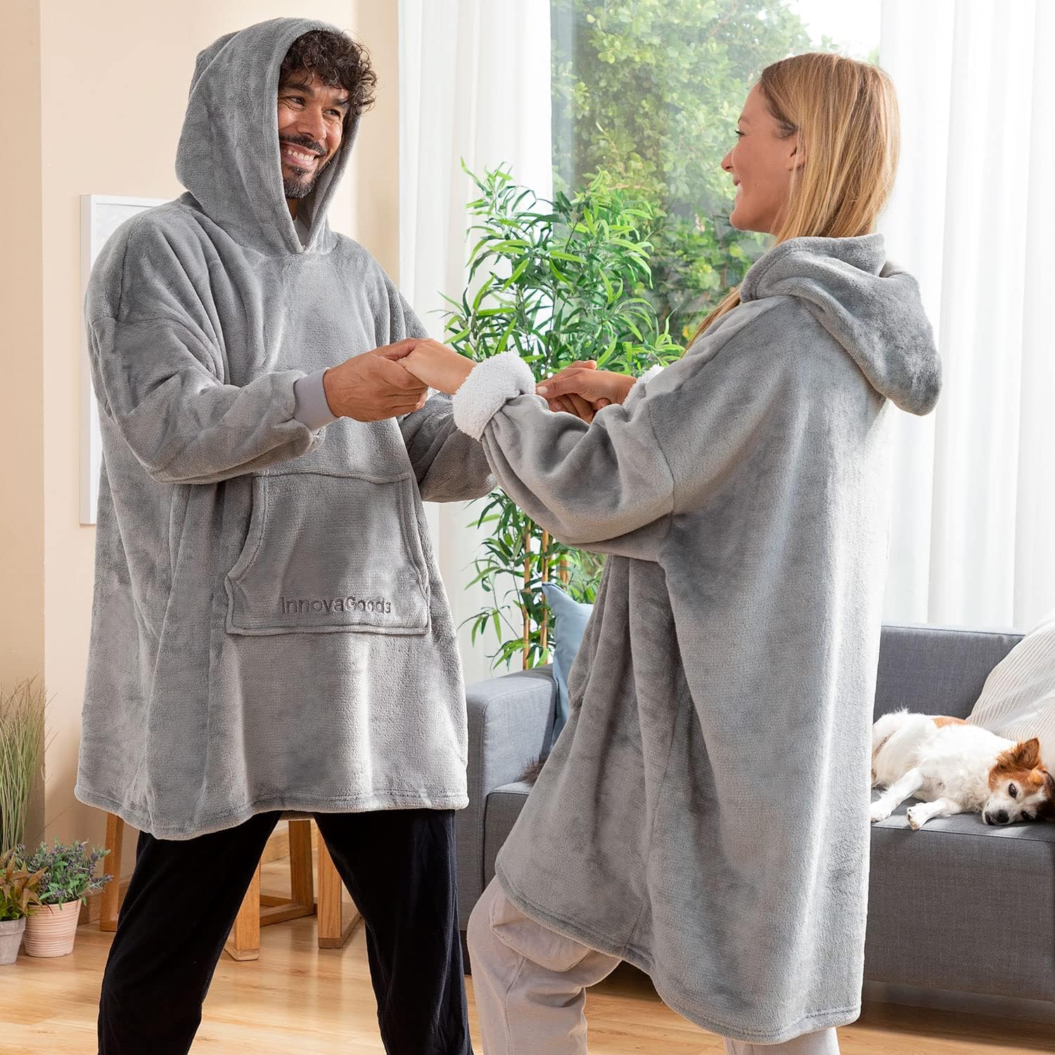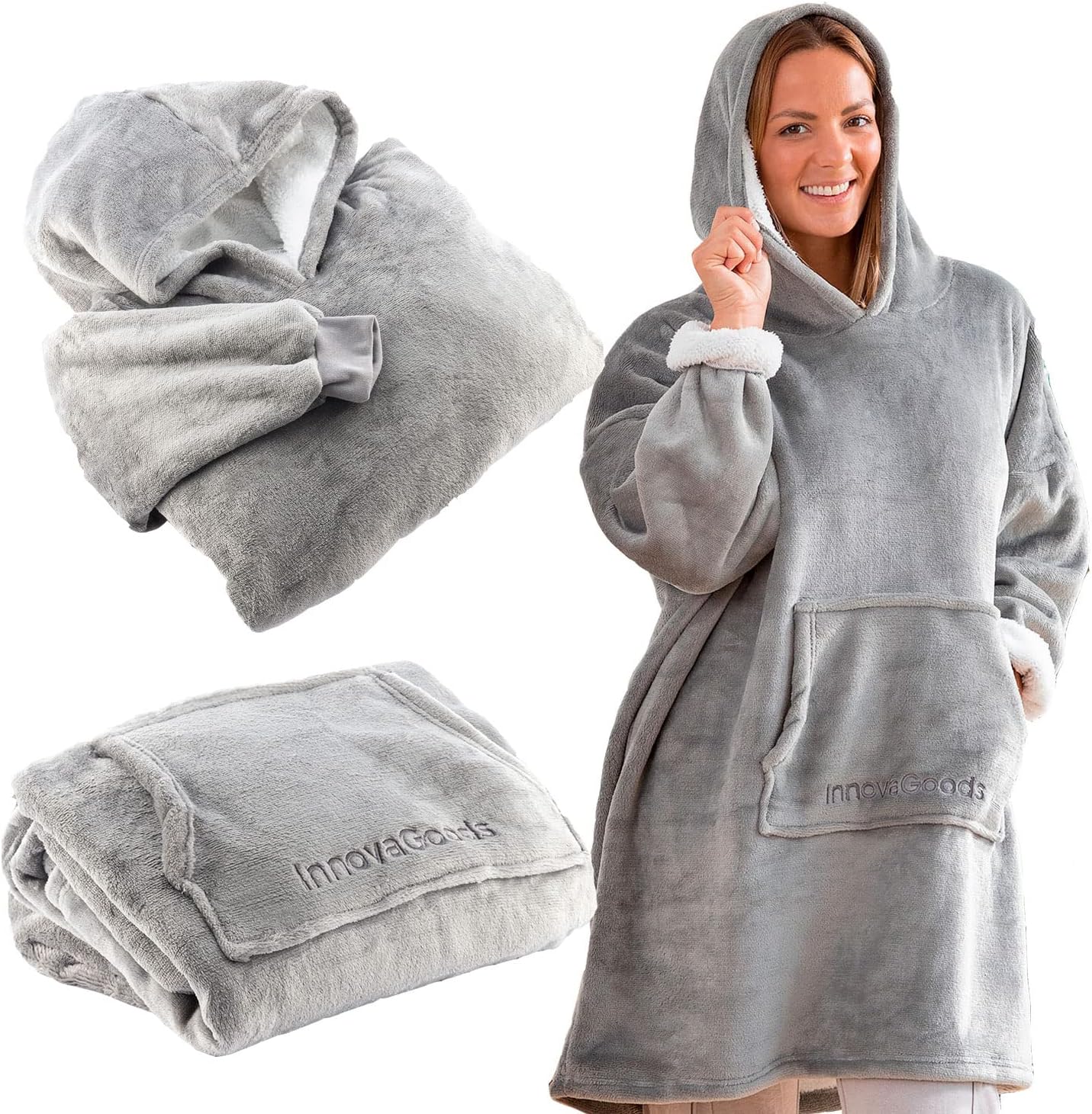InnovaGoods Unisex Erwachsene 8435527823689 Übergrosse Sweatjacke mit Fleece-Futter SWUG Grau, Bunt,