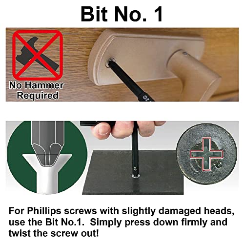 - Keine Stromversorgung nötig, kein Bohren und kein Hammer erforderlich (bei der Nutzung von Bit Nr. 1)