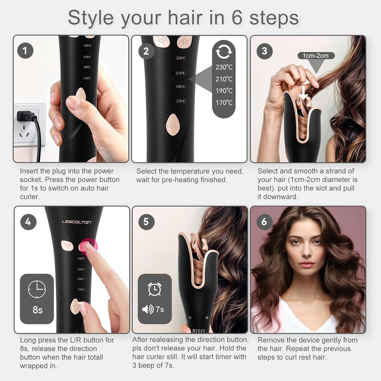 - LESCOLTON Lockenstab Grosse Locken, Innovatives automatische Locken für alle Altersgruppen