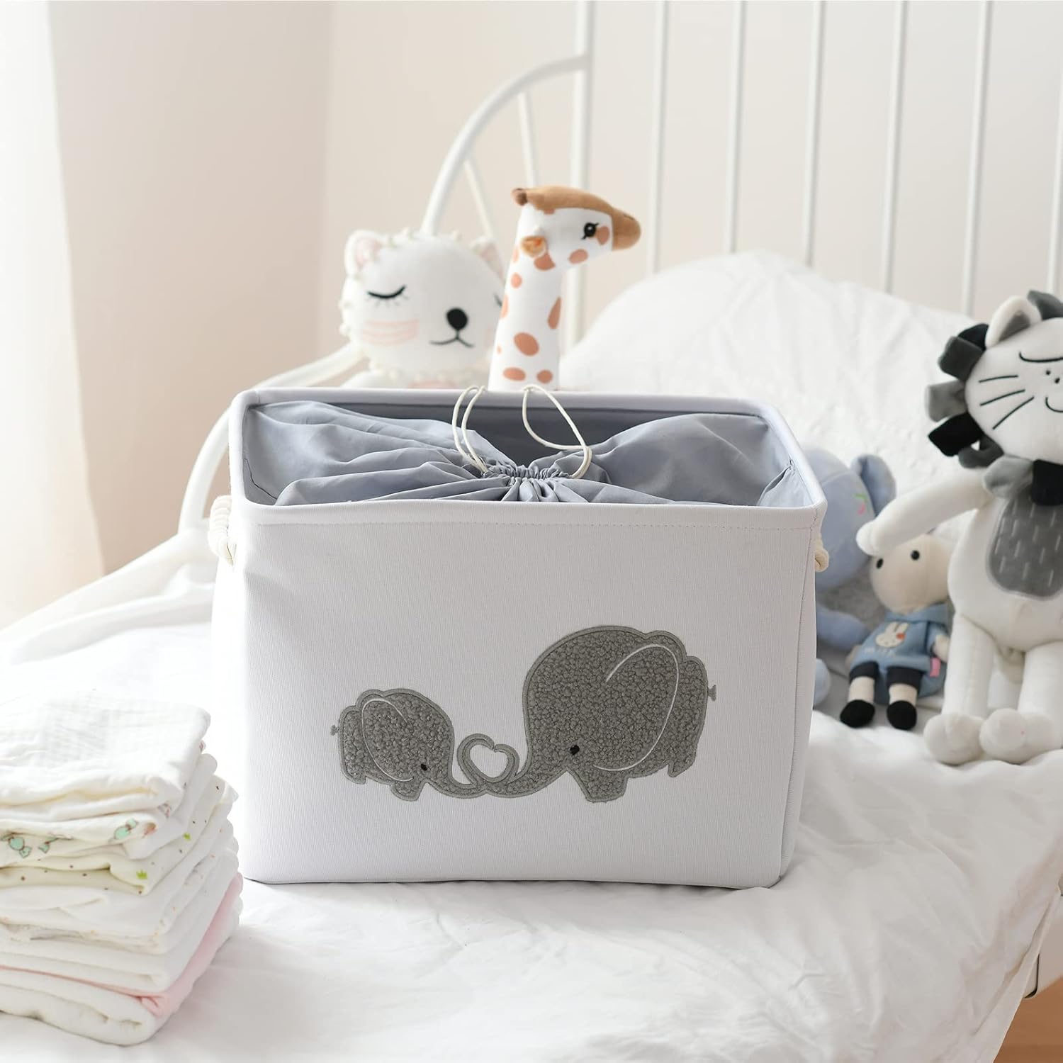 - √Leichtgewichtig und tragbar: Dieser Aufbewahrungskorb für das Kinderzimmer besteht aus leichtem Leinenmaterial, was es einfach macht, den Spielzeugorganizer auch dann zu tragen, wenn er mit Spielzeug oder Kleidung gefüllt ist. Der Elefantenkorb