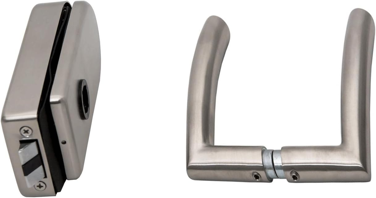 - Glas-Türschloss mit Edelstahl-Blende, Flüsterfalle & Drücker in Führung aus PTFE