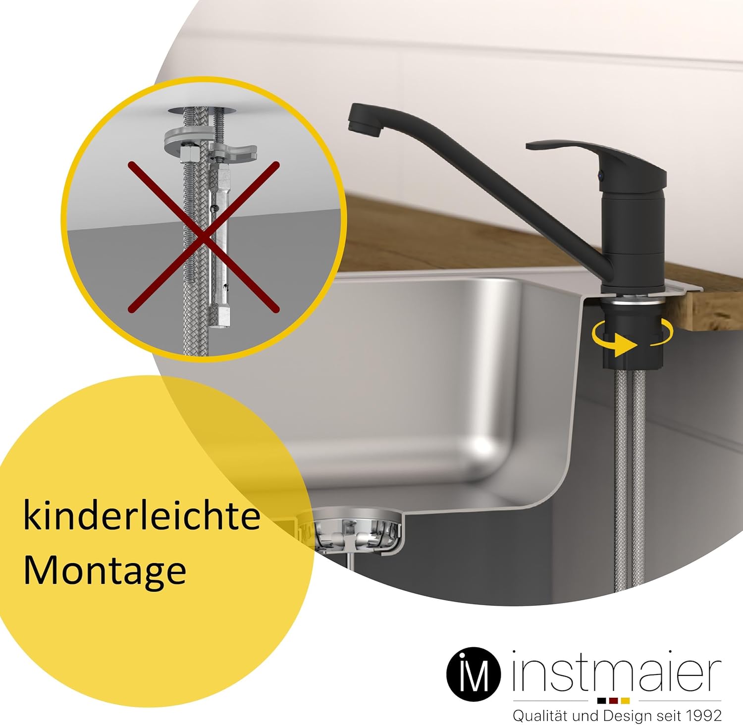 - 🔧 𝐄𝐈𝐍𝐅𝐀𝐂𝐇𝐄 𝐌𝐎𝐍𝐓𝐀𝐆𝐄 | Deinen neuen instmaier Einhandmischer montierst Du kinderleicht dank der mitgelieferten Zentralverschraubung. Mit der Lieferung erhältst Du zwei DVGW zertifizierte Anschlussschläuche