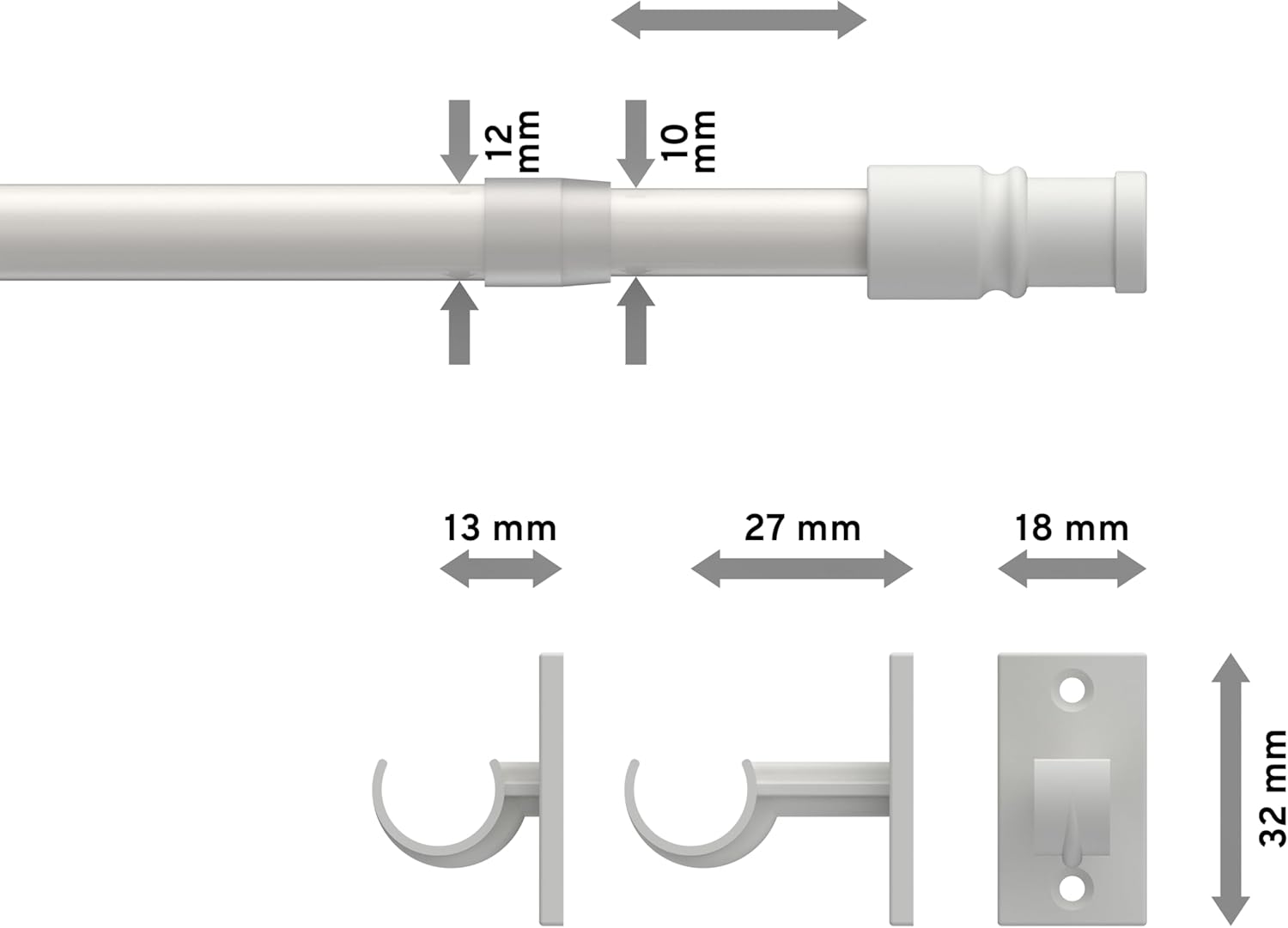 - Lieferumfang: 1 Set Caféhausstange mit Teleskoprohr, Endstücken, kurzen und langen Trägern, Klebeplatten und Schrauben