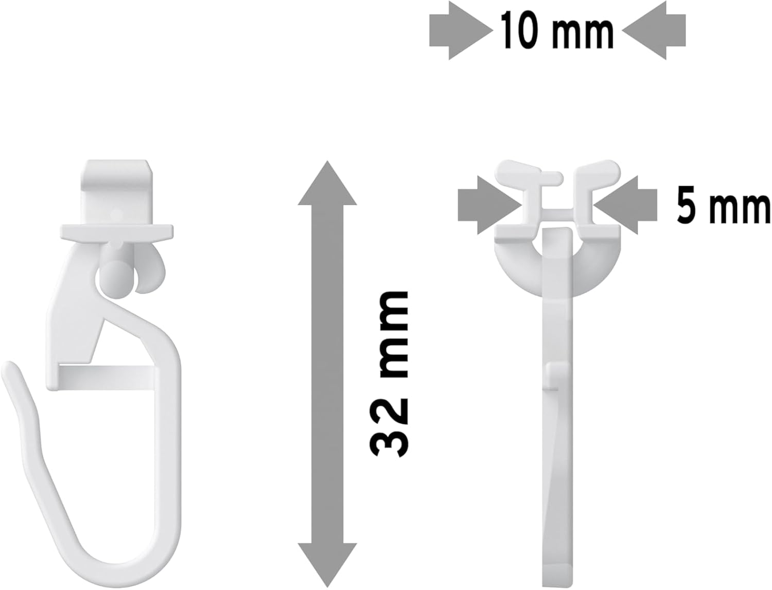 - Lieferumfang: 3 Packungen Dreh-Gleiter mit Faltenhaken (Packungsinhalt á 100 Stück)