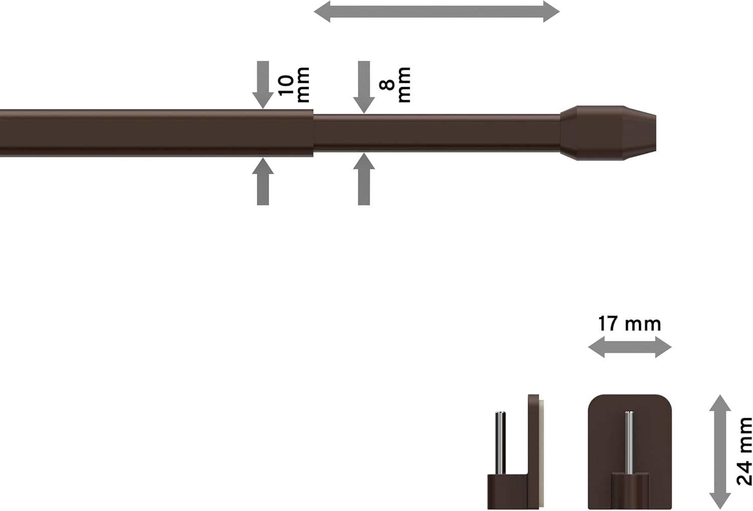 - Lieferumfang: 2 Stück Vitragestangen mit Klebehaken und Schraubhaken / Verwendung: Zum Anbringen leichter Scheibengardinen / Kurzgardinen