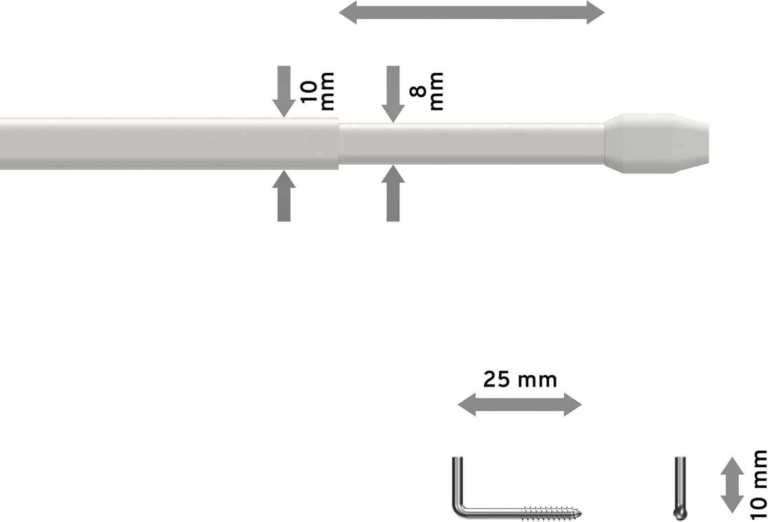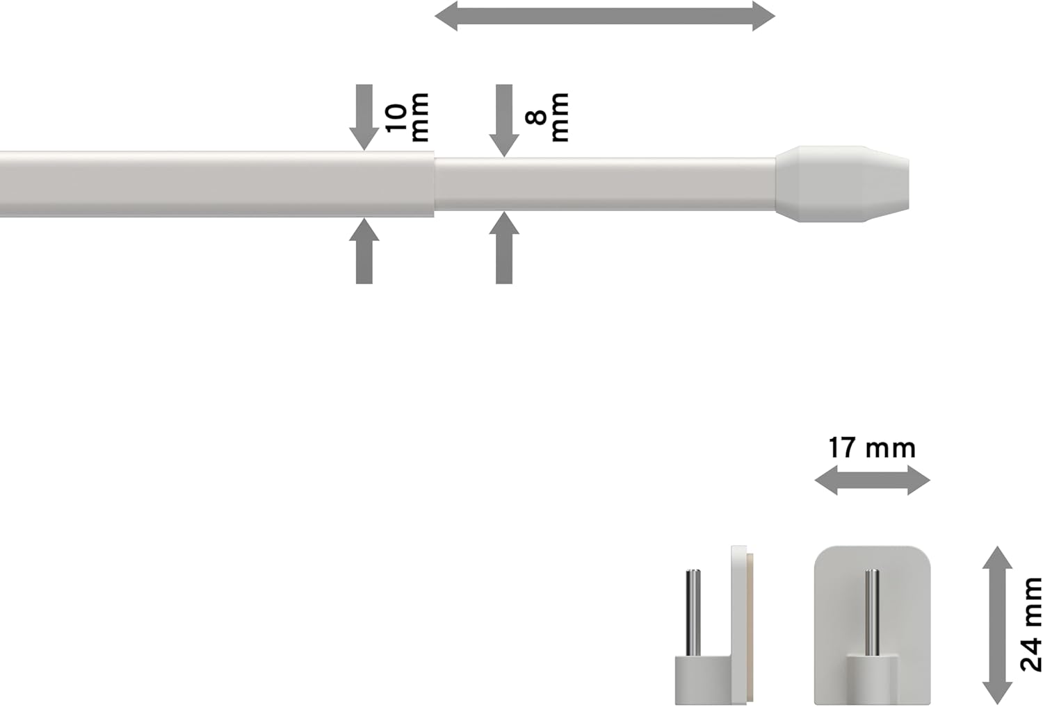 - Lieferumfang: 4 Stück Vitragestangen mit Klebehaken und Schraubhaken / Verwendung: Zum Anbringen leichter Scheibengardinen / Kurzgardinen