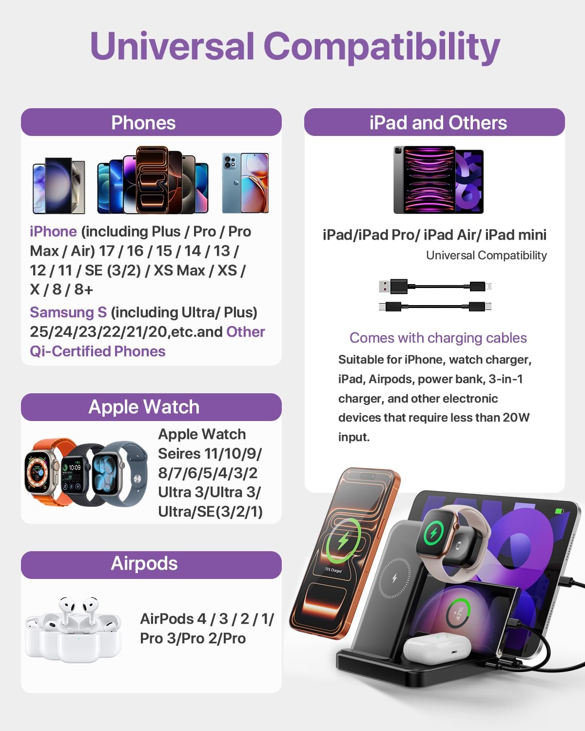 - 𝟓-𝐢𝐧-𝟏 𝐋𝐚𝐝𝐞-𝐑𝐞𝐯𝐨𝐥𝐮𝐭𝐢𝐨𝐧:Erleben Sie müheloses Laden für all Ihre wichtigen Geräte mit unserer 5-in-1 Ladestation. Kompatibel mit iPhone 17/17 Pro/17 Pro Max bis iPhone 8, Apple Watch Ultra 3/Ultra