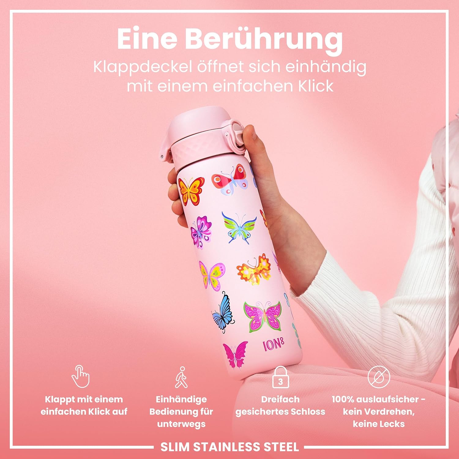 Ion8 Kinder Trinkflasche, Auslaufsicher, Einhandöffnung, Sichere Verriegelung, Spülmaschinenfest, BP