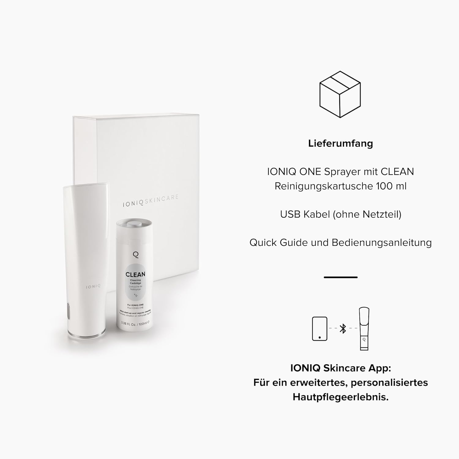 - Intelligenter IONIQ ONE Hautpflege-Sprayer mit dem speziell dafür entwickelten Beauty Produkten. Magnetic Skin Technology für absolut ebenmässige und präzise Anwendung der Produkte auf der Haut.