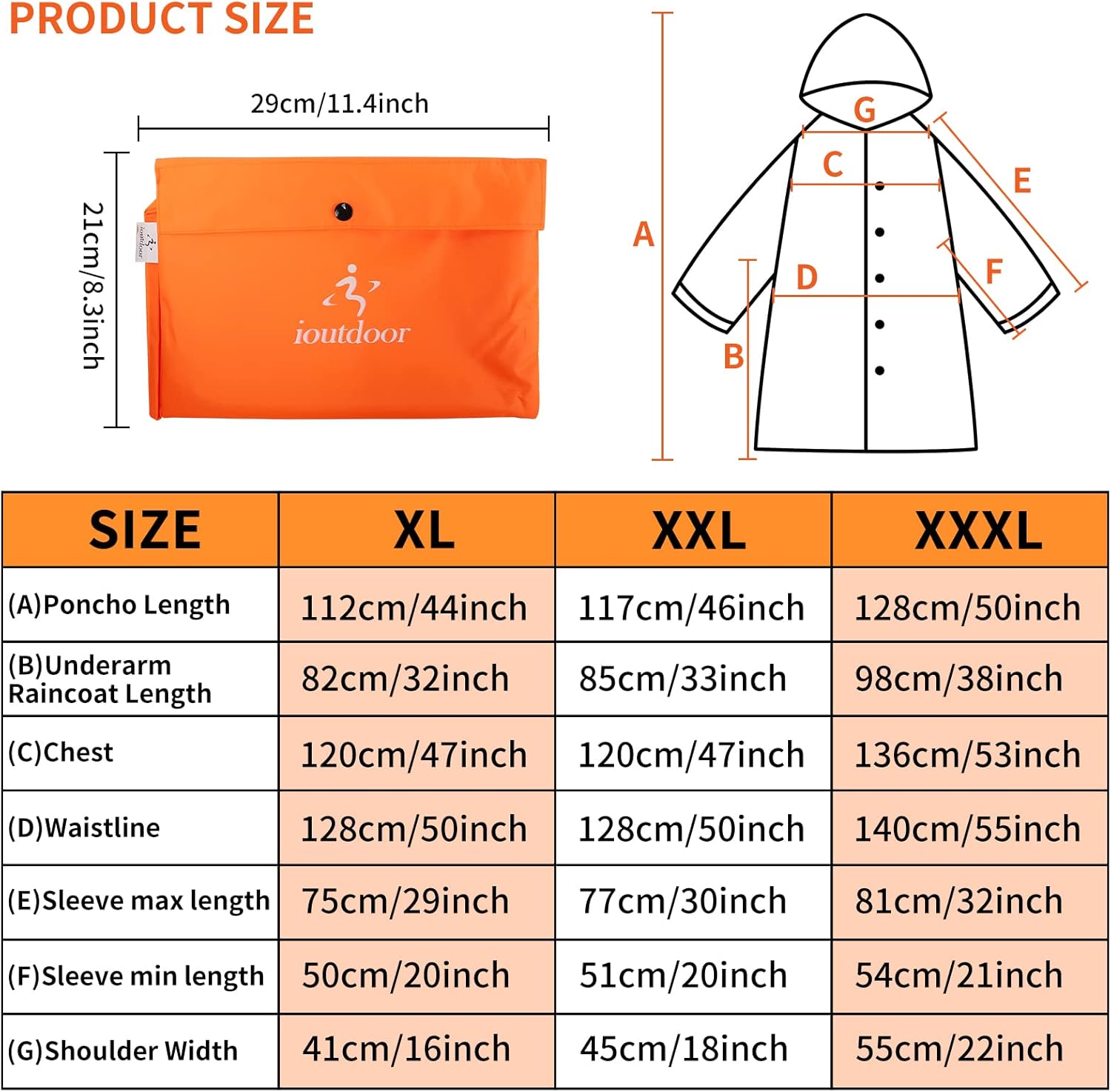 - ►【3 Farben, 3 Grössen, geeignet für mehrere Szenen】Der Regenmantel hat 3 Farben: Marineblau, Rosenrot und Orange; 3 Grössen: XL, 2XL, 3XL (bitte entsprechend dem zweiten Bild auswählen). Der Regenmantel eignet sich sehr gut zum Wandern, Camping