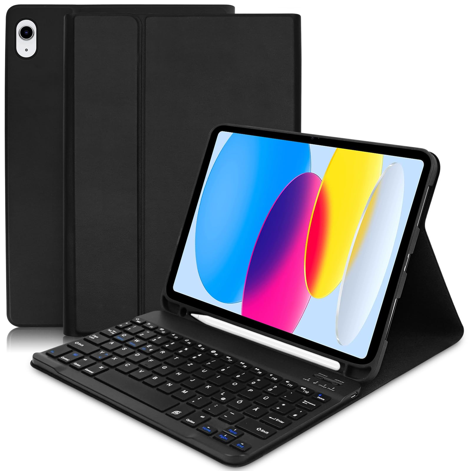- 【Kompatible Modelle】 – Die hülle mit tastatur ist speziell massgeschneidert für iPad 10.Generation 10.9 Zoll 2022 (A2696, A2757, A2777)entwickelt, mit Bluetooth-Tastatur (DE Layout), QWERTZ-Layout, bitte überprüfen Sie die Modellnummer Ihres