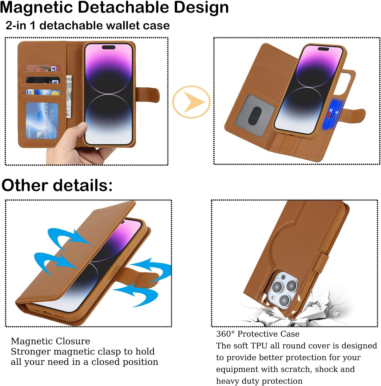 - Die abnehmbare 2-in-1-Brieftasche kann als einzelnes Etui verwendet werden, sodass Sie Ihre sperrige Brieftasche nicht durch das Haus tragen müssen, oder als Etui und Brieftasche können zusammen als Brieftasche verwendet werden.