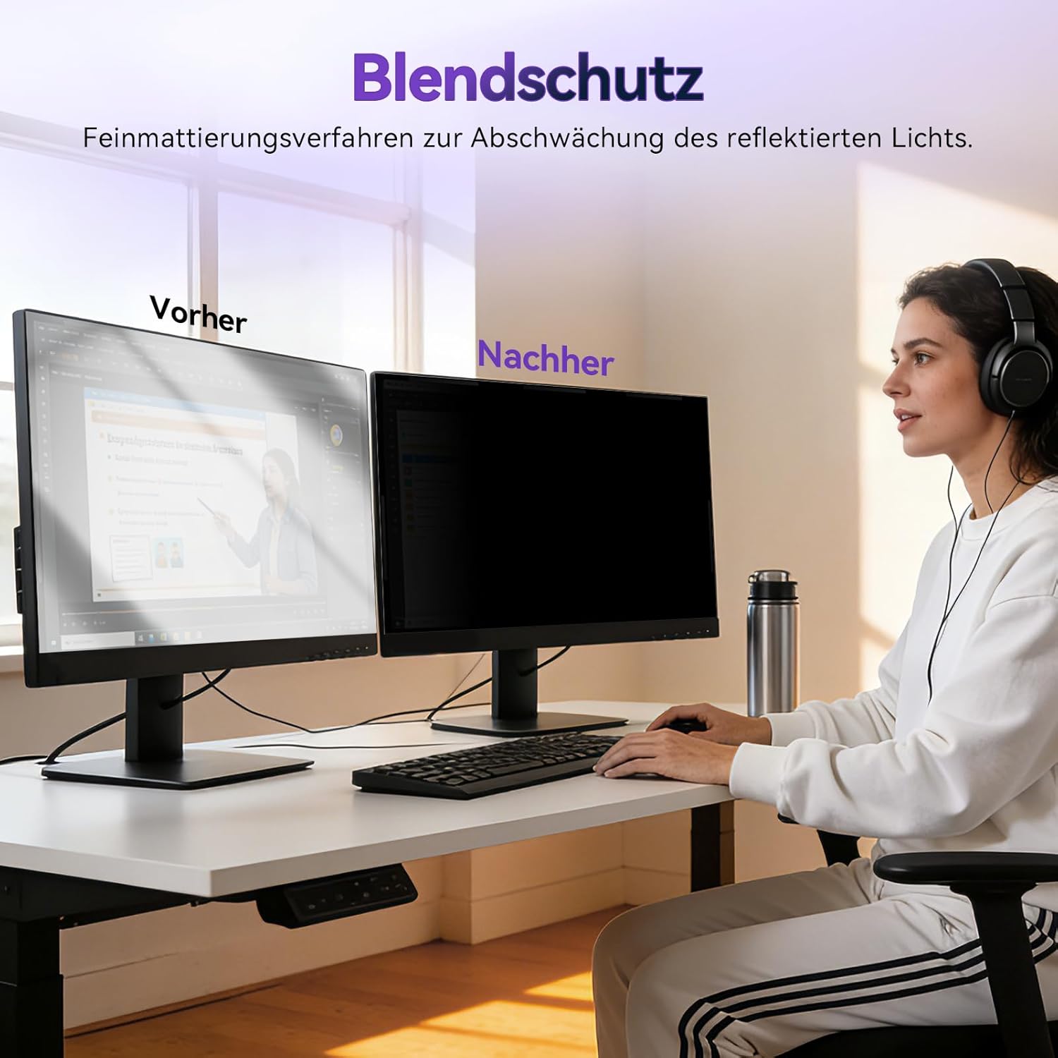 - [Augen- und Hautschutz] Moderne Bildschirme emittieren erhebliche Mengen an schädlichem Licht. Unser Computer-Sichtschutzfilter wurde speziell entwickelt, um 98 % des blauen Lichts und der UV-Strahlung zu blockieren und die damit verbundenen