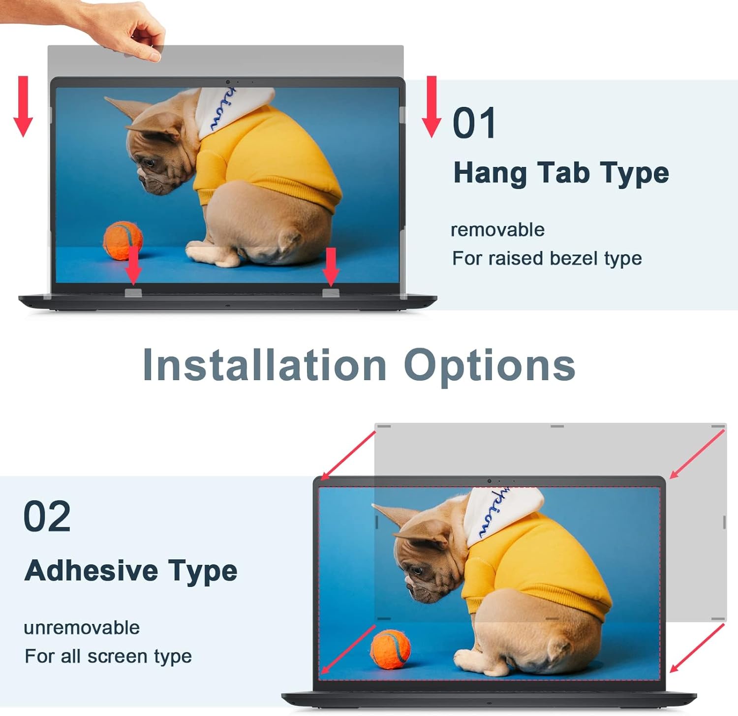 - 【Einfache Installation】 Der Laptop 15.6 blickschutzfilter kann in 10 Sekunden abgeschlossen werden. Zwei Installationsmethoden: 1. Abnehmbare Diahalterungslaschen, die Sie je nach Bedarf installieren oder entfernen können. 2 permanente