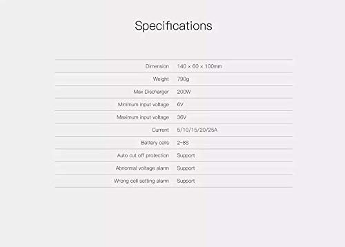 • Ein Schlüssel zur intelligenten Entladung, geboren für RC-Benutzer. Unterstützung 2-8 s 7-35 v entladen mit maximal 200 Watt entladekapazität